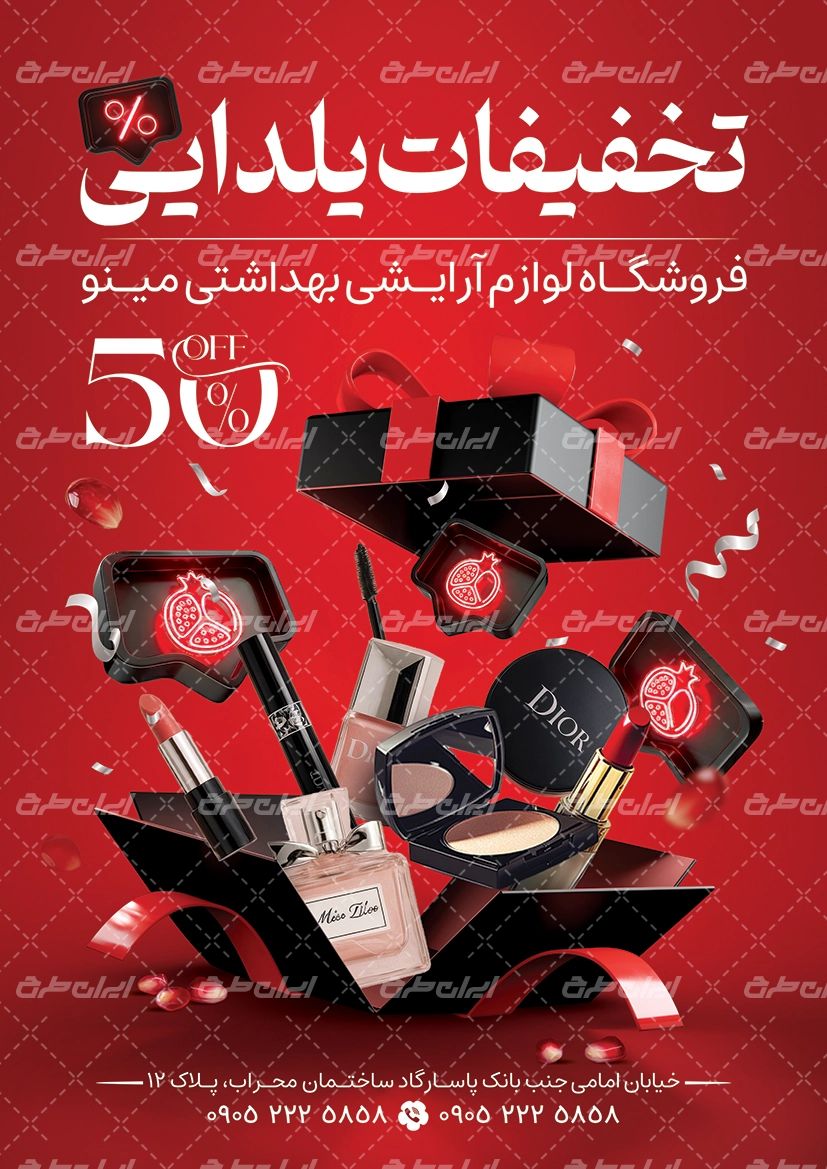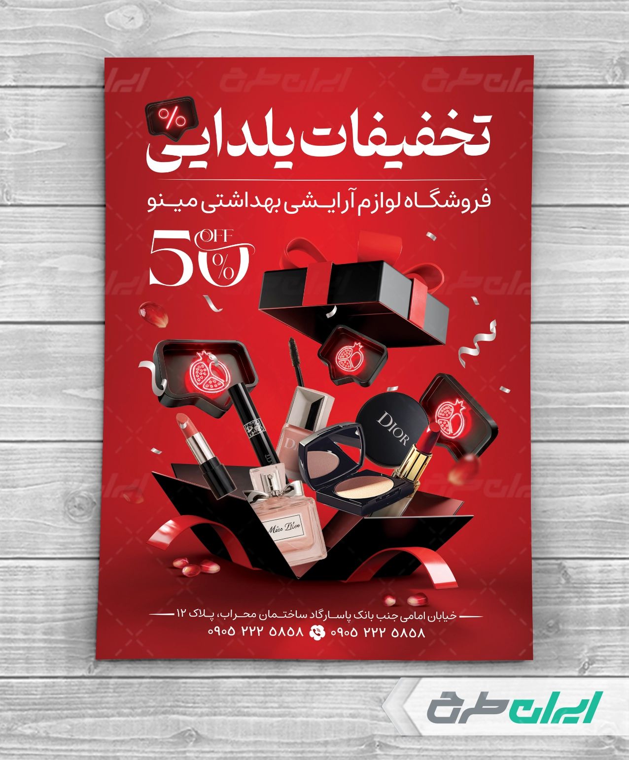 تراکت فروشگاه لوازم آرایشی تخفیفات یلدایی