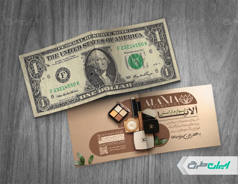 تراکت فروشگاه لوازم آرایشی و بهداشتی طرح دلار