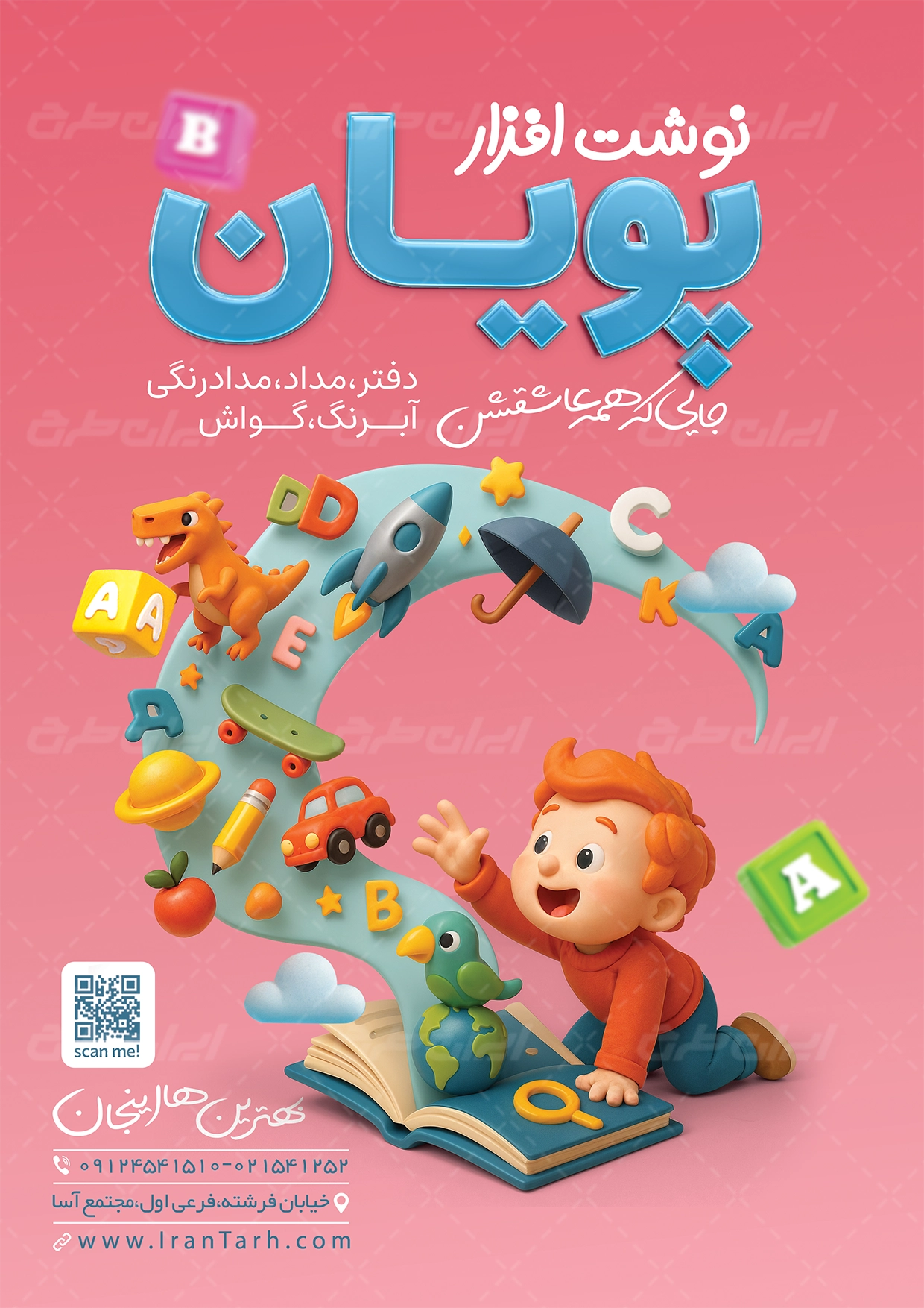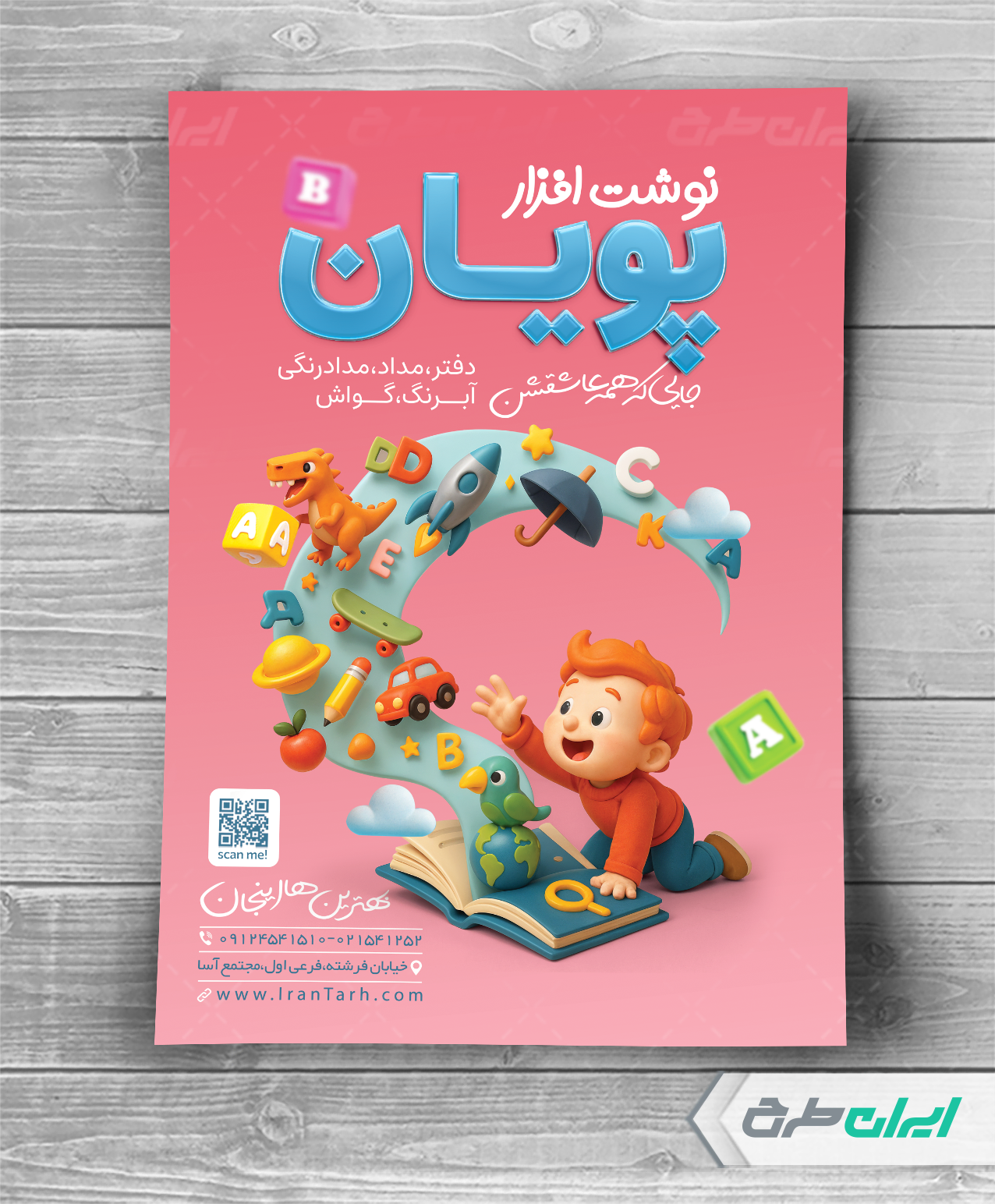 طرح تراکت لایه باز فروشگاه نوشت افزار، جهت بازاریابی و تبلیغات این دسته از فروشگاه ها توسط تیم طراحان ایران طرح طراحی و در دسترس کاربران سایت قرار گرفته است.