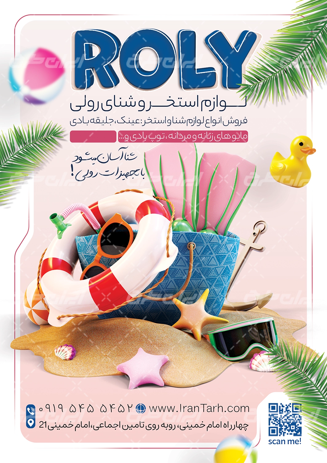طرح تراکت فروشگاه لوازم شنا شامل: