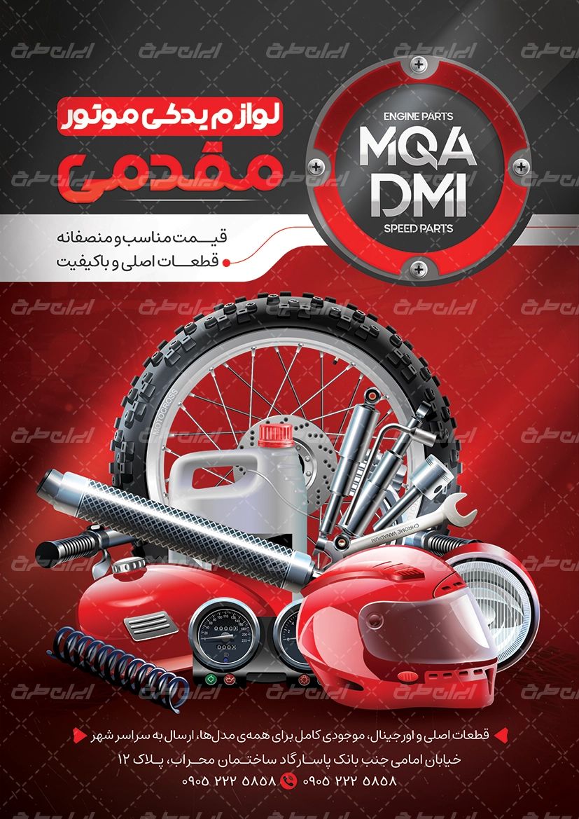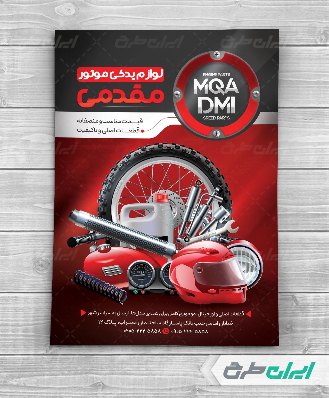 طرح تراکت لایه باز لوازم یدکی موتور سیکلت، توسط تیم ایران طرح برای بازاریابی و تبلیغات این فروشگاه طراحی شده است.