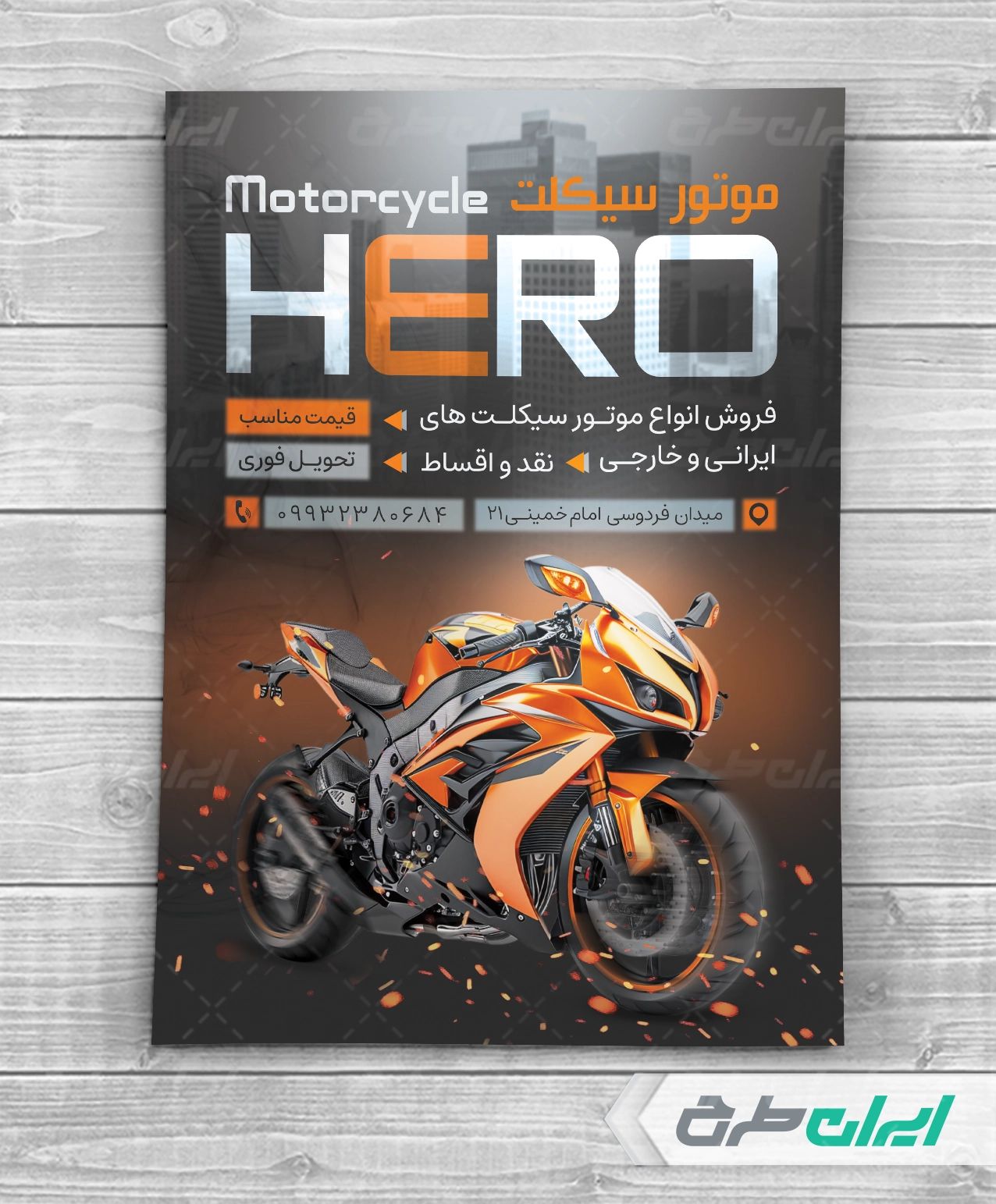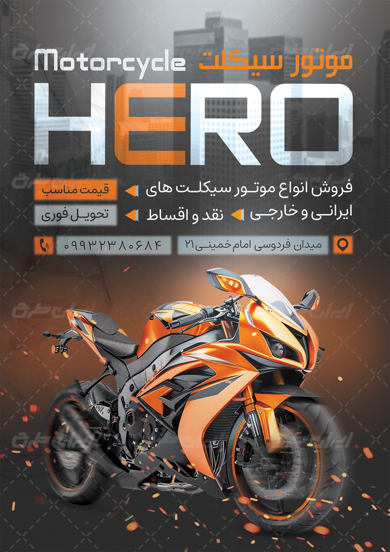 طرح لایه باز تراکت فروشگاه موتور سیکلت، توسط تیم ایران طرح جهت تبلیغات و بازاریابی این مشاغل طراحی و در دسترس کاربران سایت قرار گرفته است.
