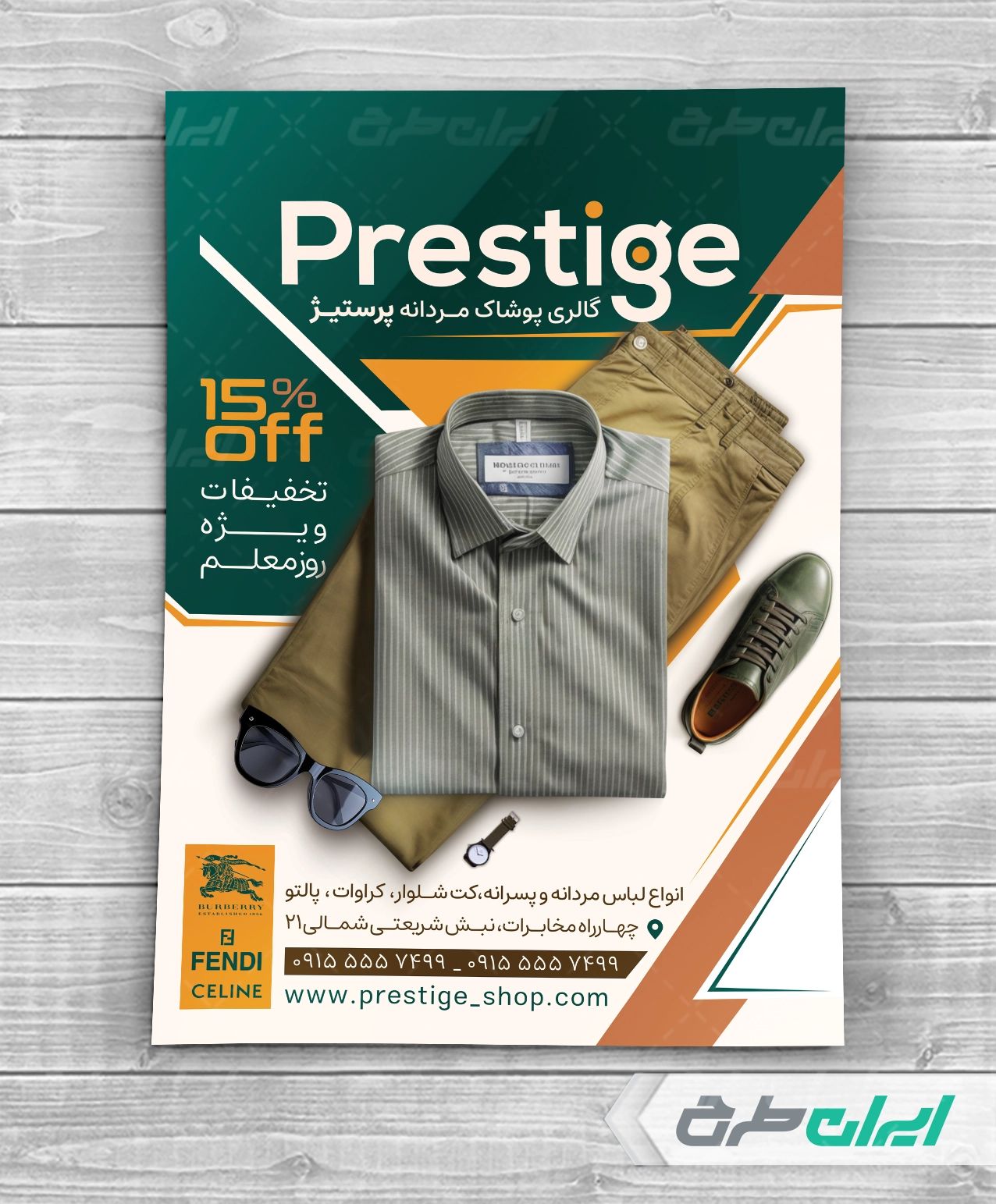 - طراحی ساده و کاربردی تراکت پوشاک مردانه