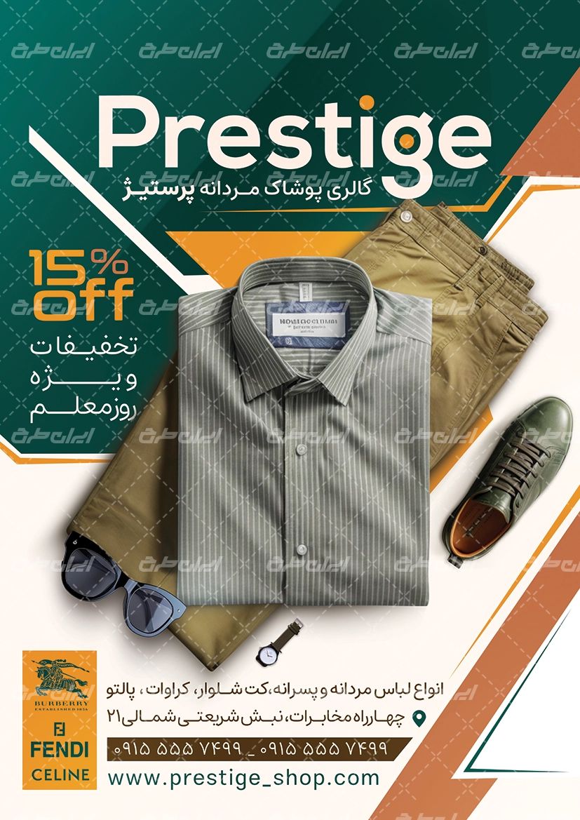 - استفاده از عکس با کیفیت پوشاک مردانه در طراحی تراکت