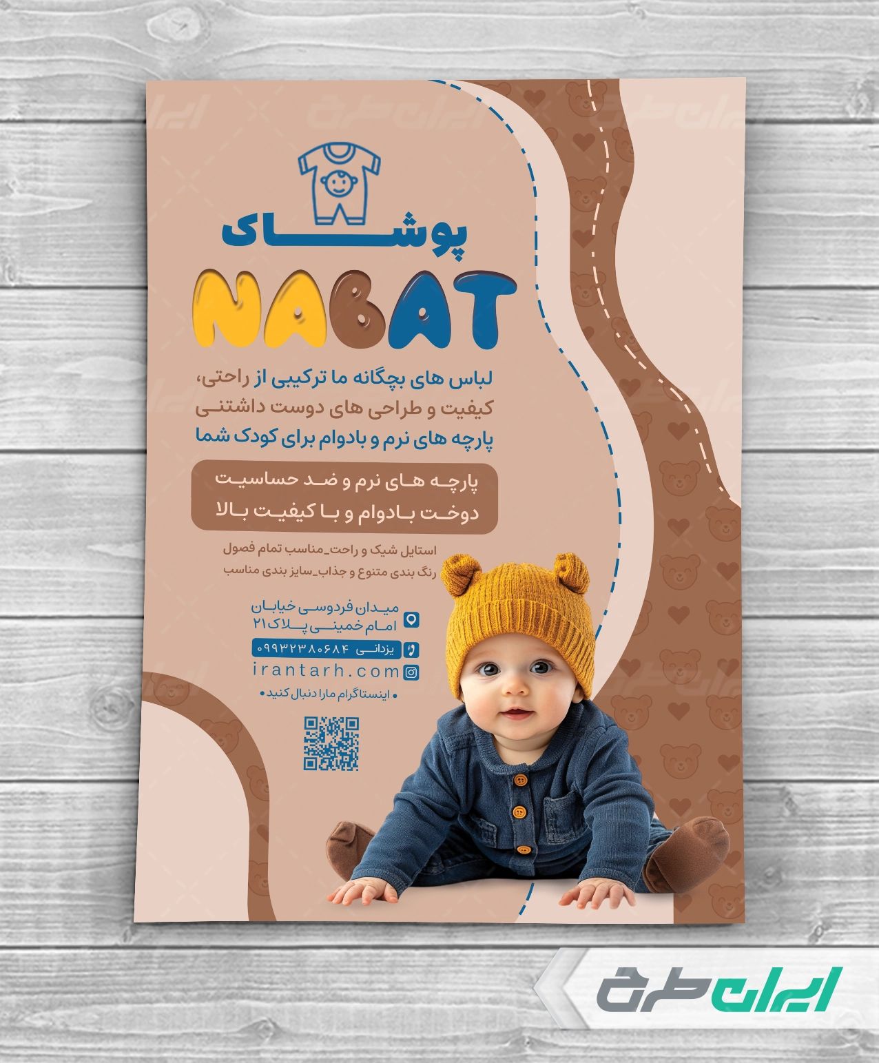 طرح تراکت گالری پوشاک بچه گانه شامل: