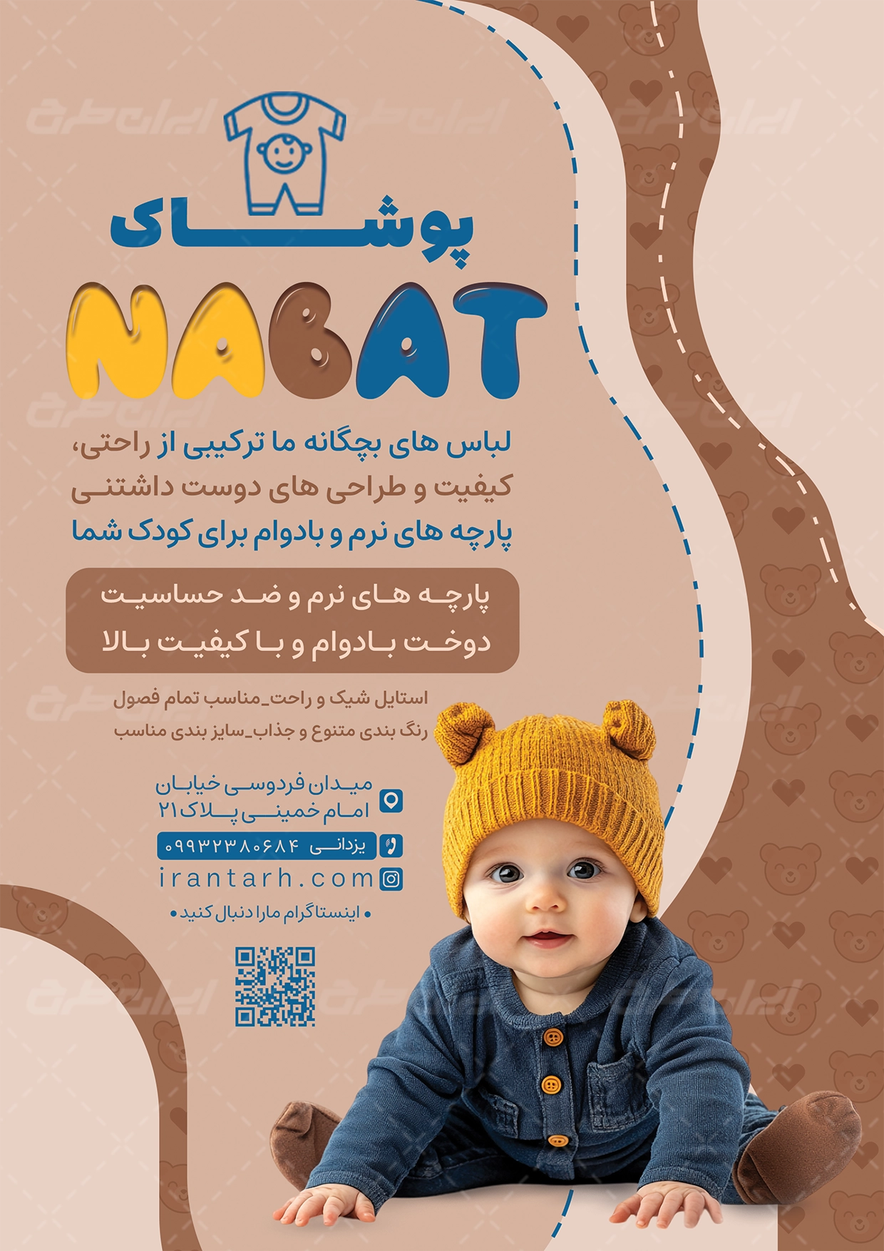 طرح تراکت گالری پوشاک کودک، جهت بازاریابی و تبلیغات این دسته از فروشگاه ها توسط تیم طراحان ایران طرح طراحی و در دسترس کاربران سایت قرار گرفته است.