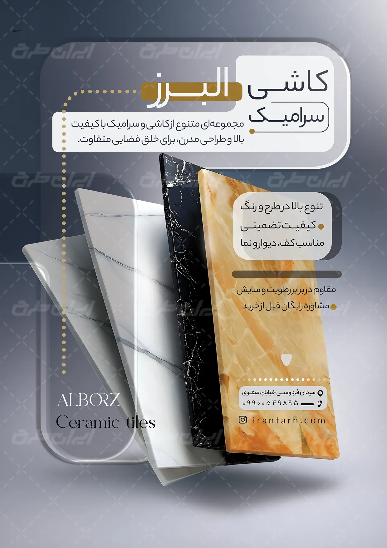 طرح تراکت فروشگاه کاشی و سرامیک شامل:
