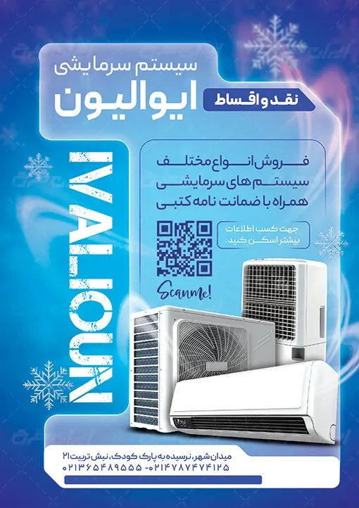 - طراحی شیک و کاربردی تراکت فروشگاه لوازم سرمایشی