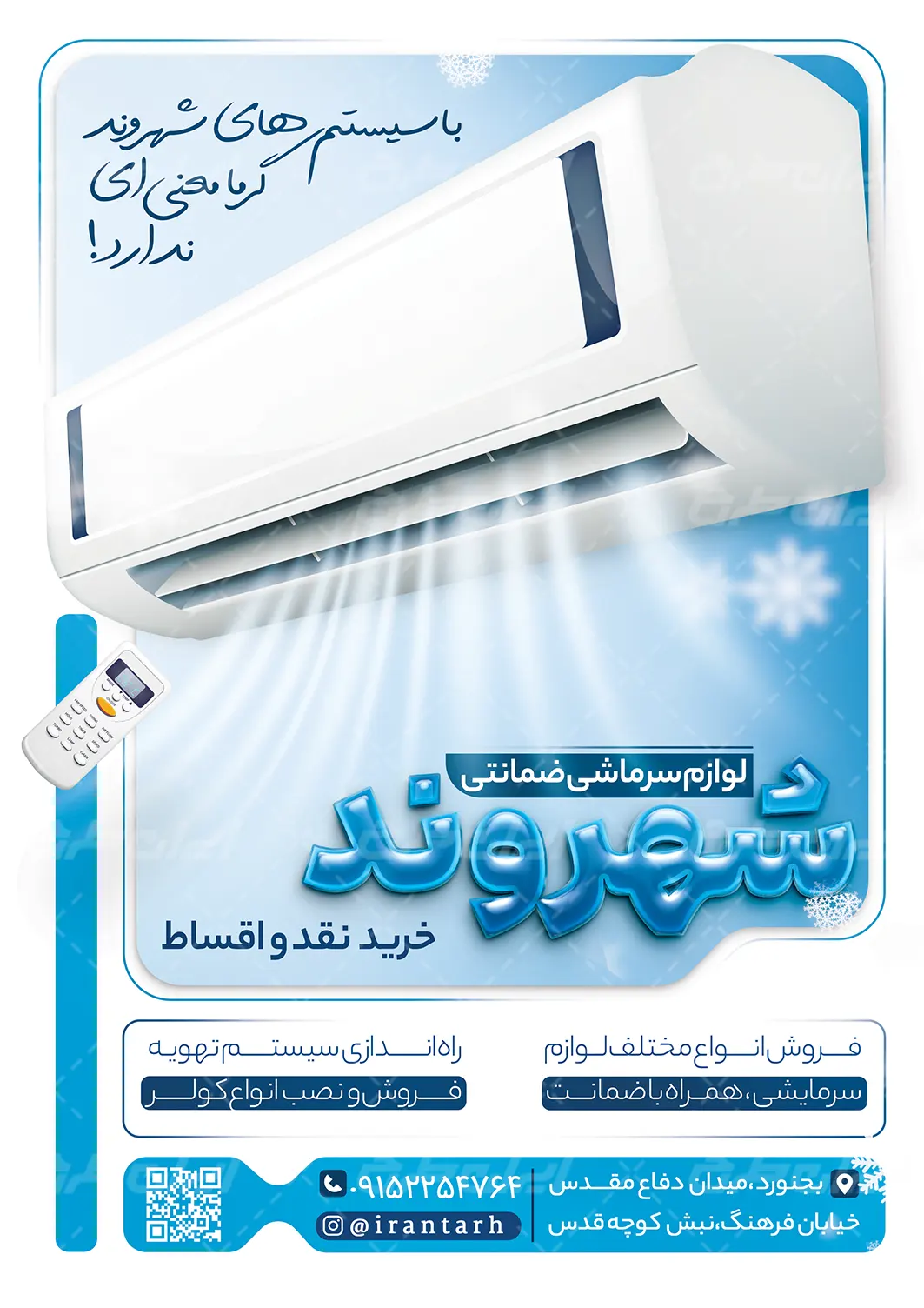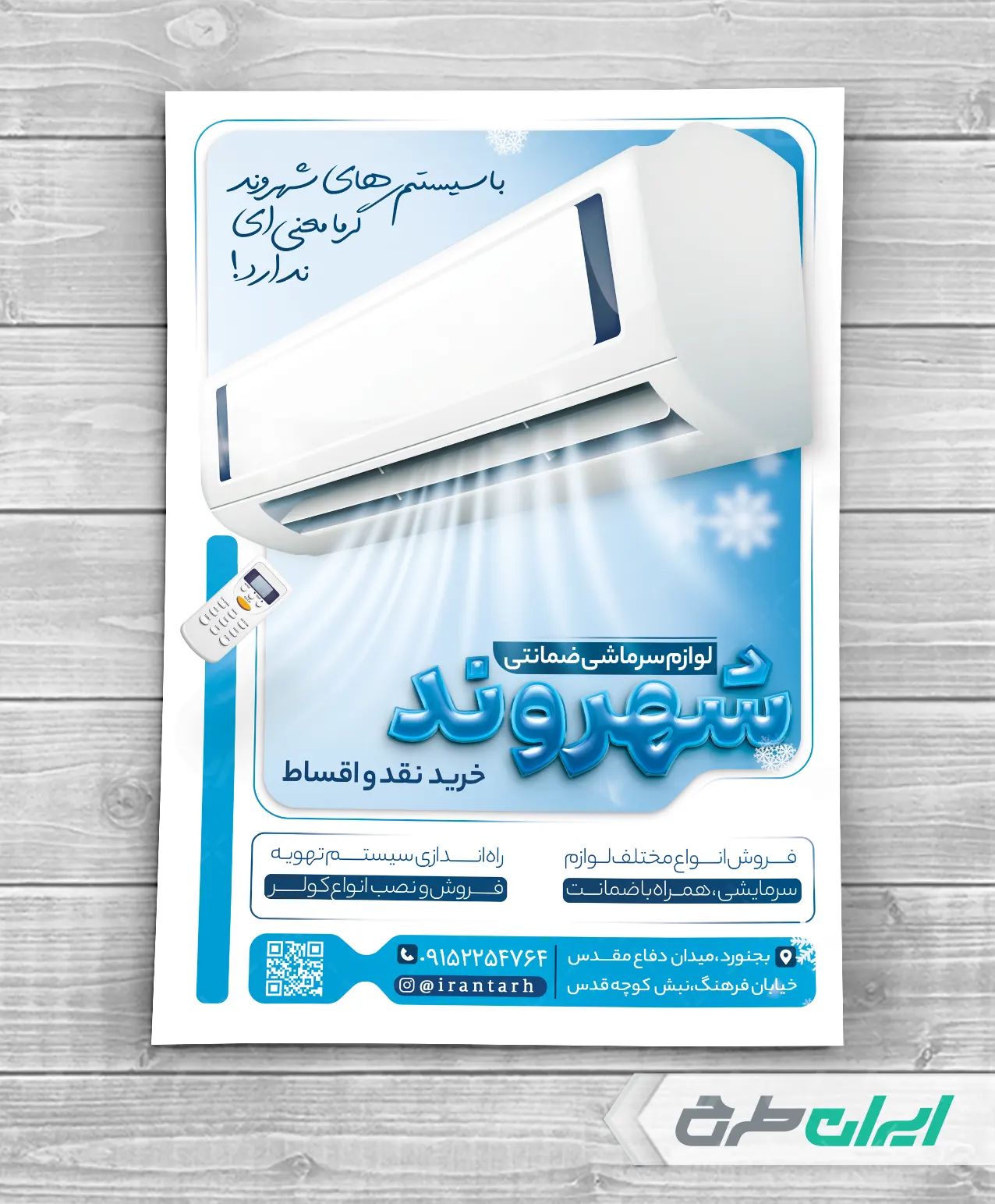 - طراحی شیک و کاربردی تراکت فروشگاه لوازم سرمایشی