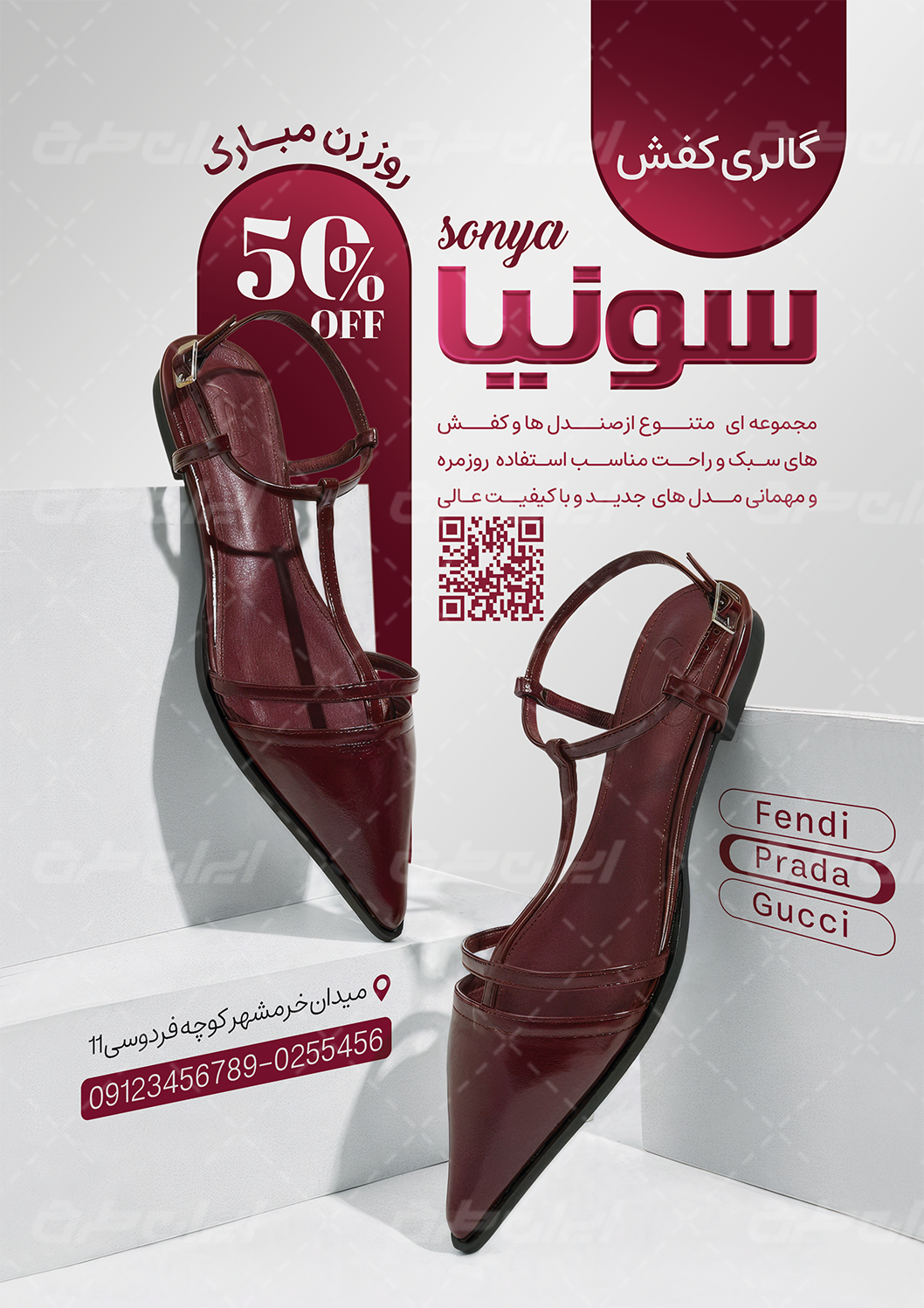 - استفاده مناسب از عکس با کیفیت کفش مجلسی در طرح تراکت کفش فروشی