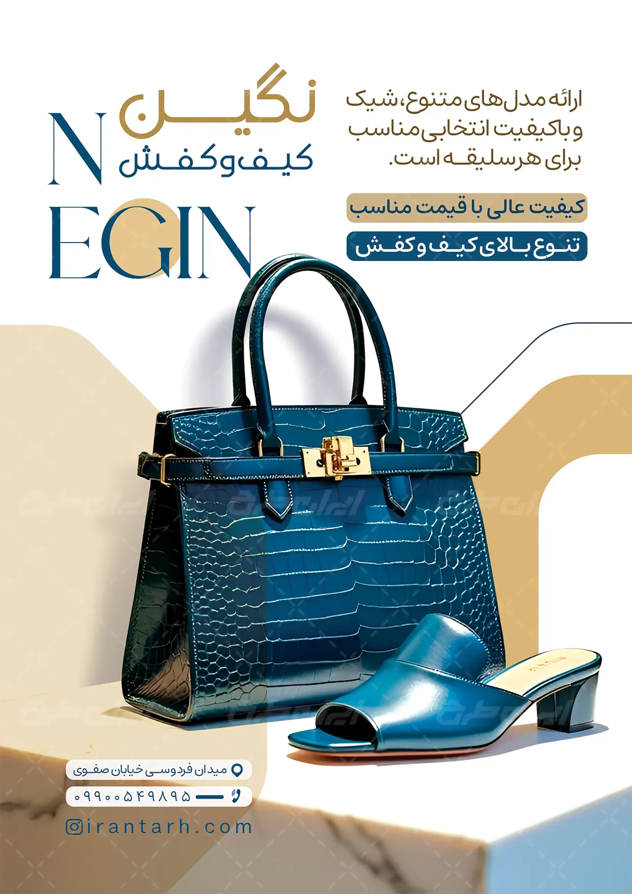 - استفاده مناسب از عکس با کیفیت کفش مجلسی در طرح تراکت کفش فروشی