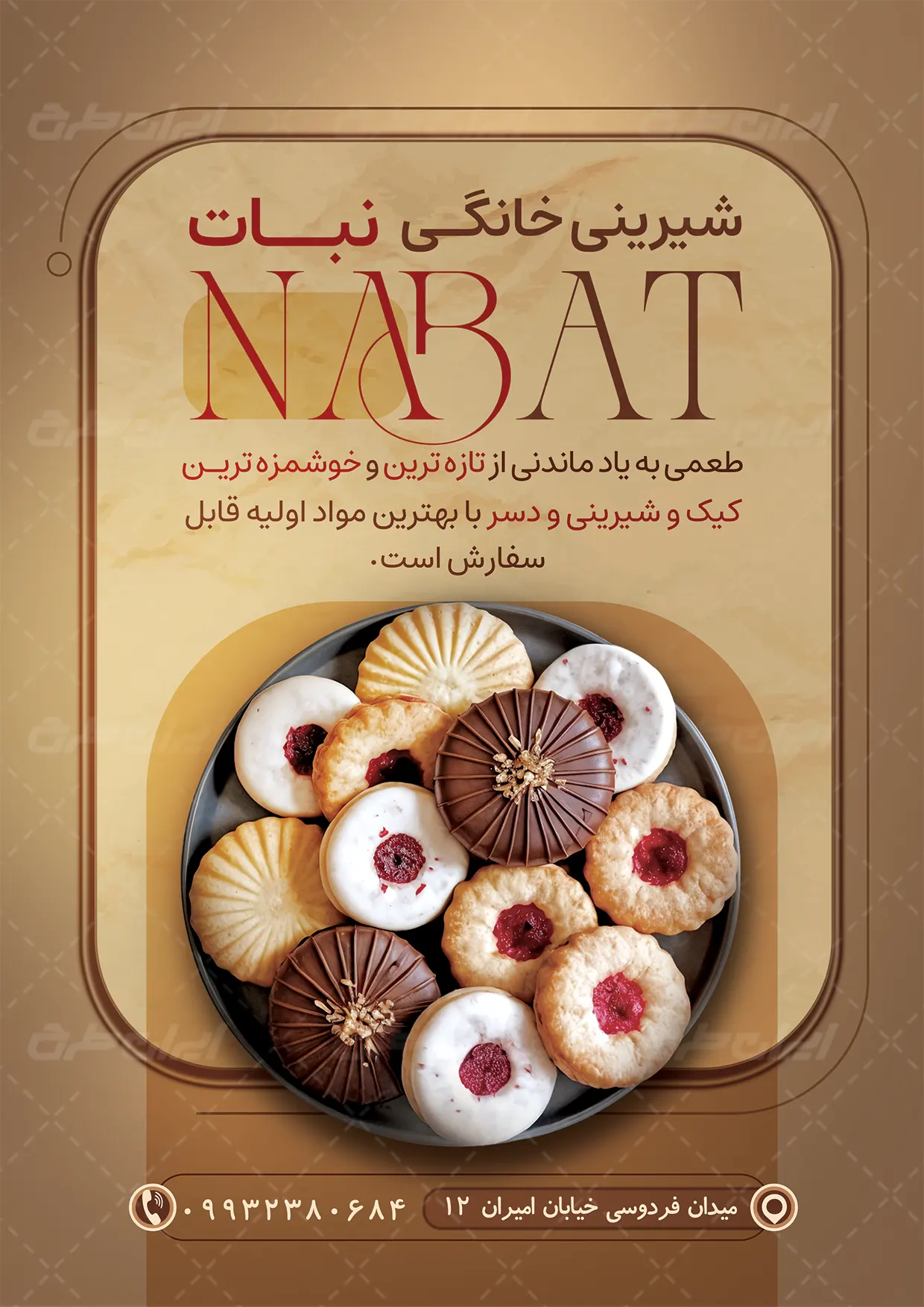 - استفاده مناسب از عکس با کیفیت شیرینی در طرح تراکت قنادی