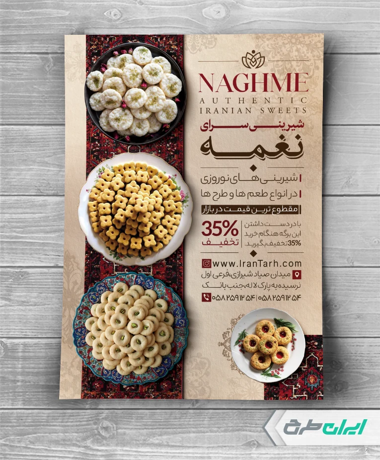مشخصات فنی طرح تراکت رنگی شیرینی فروشی