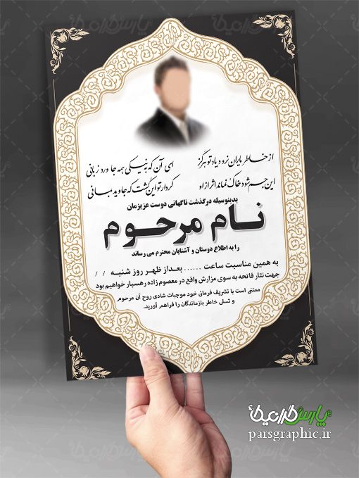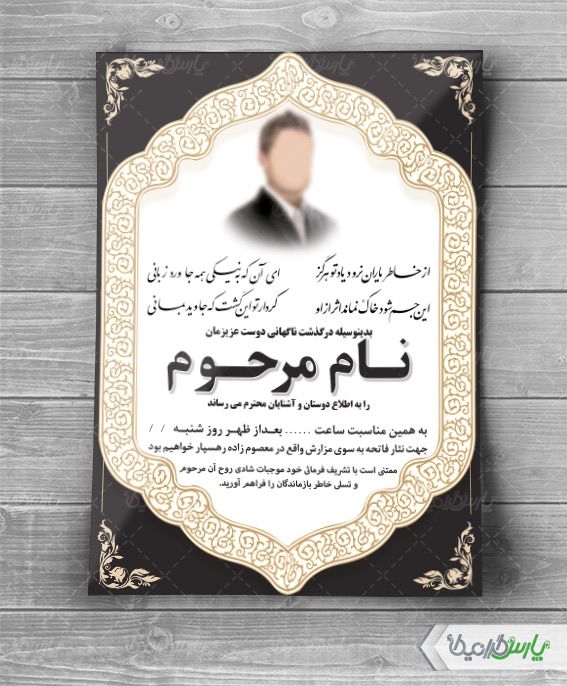 طرح آگهی ترحیم بصورت لایه باز و با پسوند psd طراحی شده است .