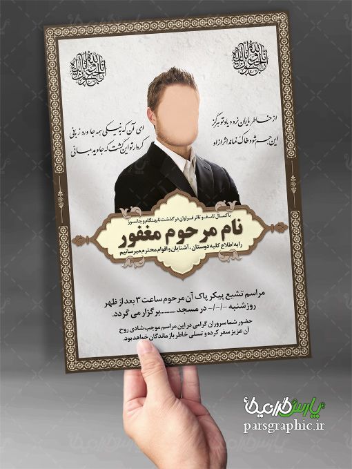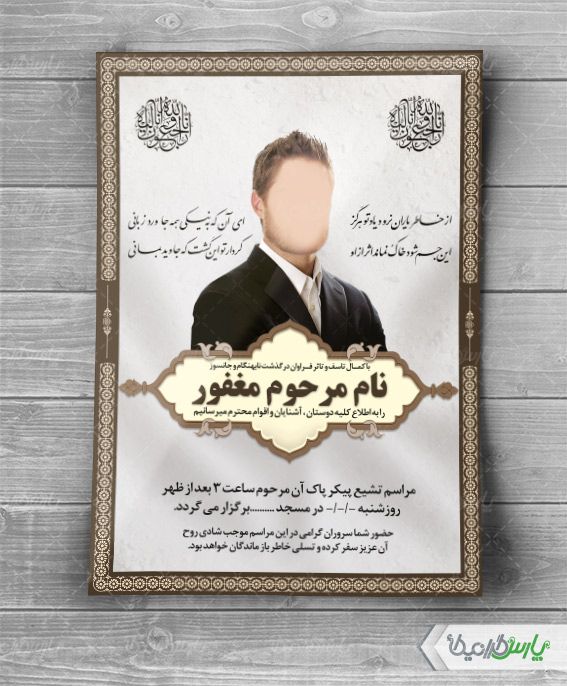 از طرح لایه باز اعلامیه ترحیم می توانید برای مراسم سوم ، چهلم ، سالگرد و ختم استفاده نمایید.
