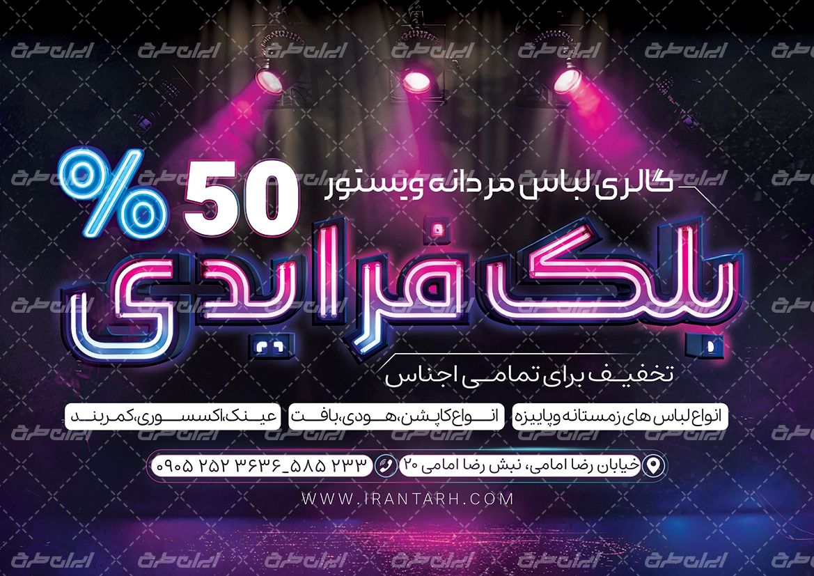 مشخصات فنی طرح تراکت لباس فروشی مردانه بلک فرایدی