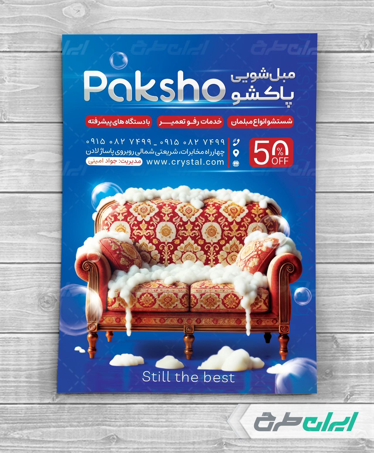 طرح مبل شویی جهت تبلیغات این دسته از مشاغل توسط تیم ایران طرح طراحی شده است.