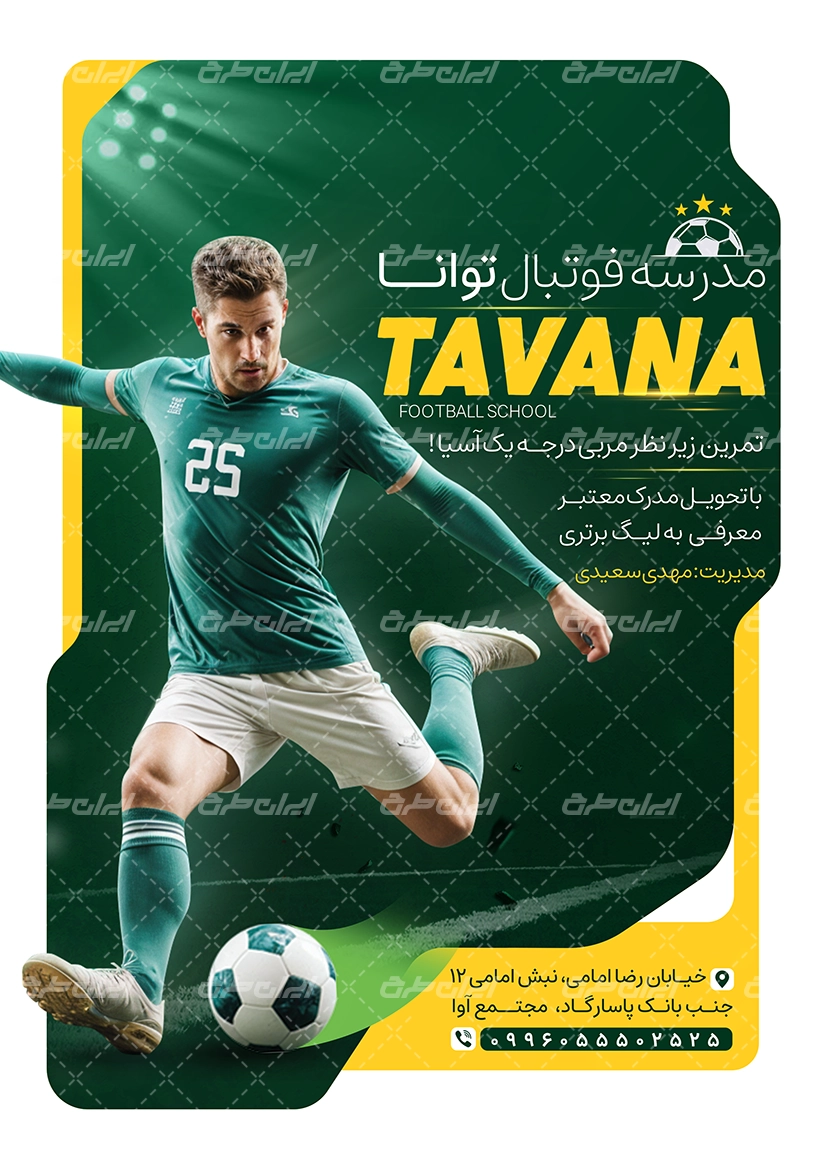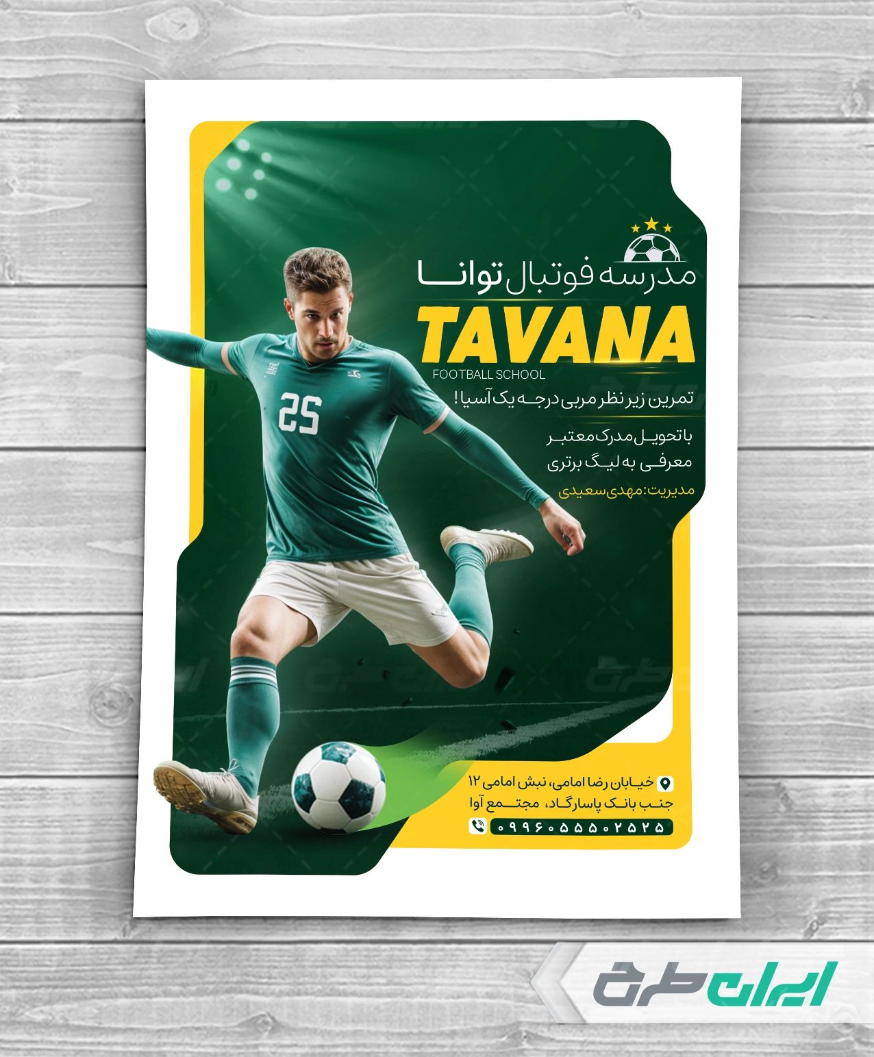 طرح تراکت لایه باز مدرسه فوتبال، جهت بازاریابی و تبلیغات این کلاس ها توسط ایران طرح طراحی و در اختیار کاربران سایت قرار گرفته است.