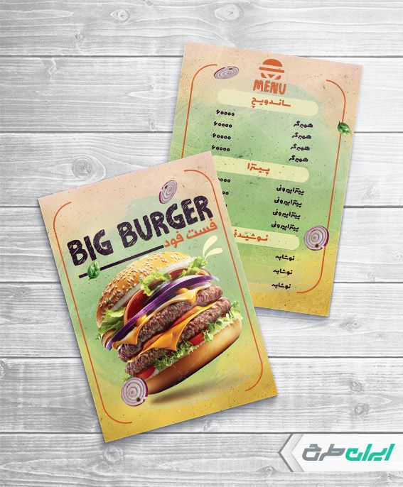 طرح تراکت منو فست فود جهت استفاده این دسته از رستوران ها توسط طراحان ایران طرح طراحی، و در دسترس کاربران سایت قرار گرفته است.
