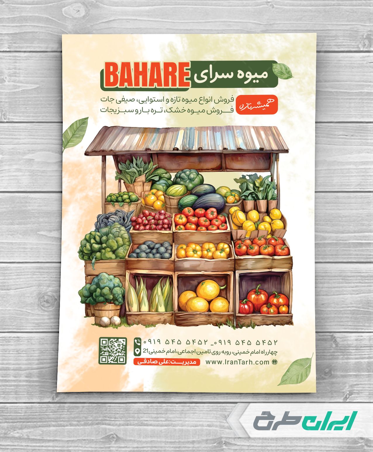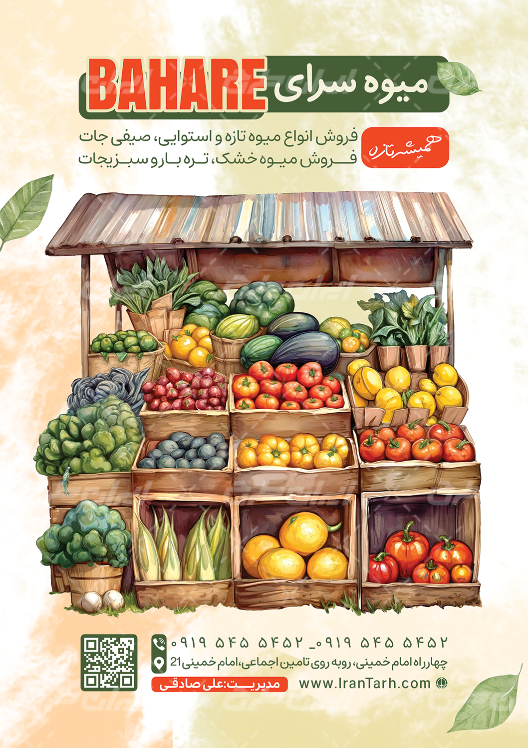 - طراحی شیک و کاربردی تراکت که مناسب شغل میوه و تره بار می باشد.