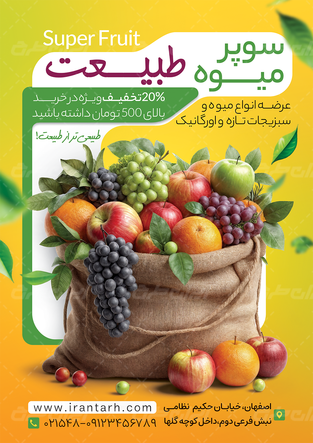 نکات طرح لایه باز تراکت سوپر میوه و تره بار