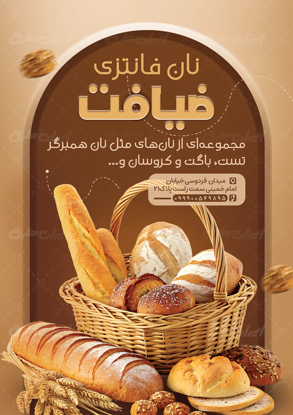 - استفاده از عکس با کیفیت نان فانتزی که مناسب طرح تراکت فروشگاه نان می باشد.