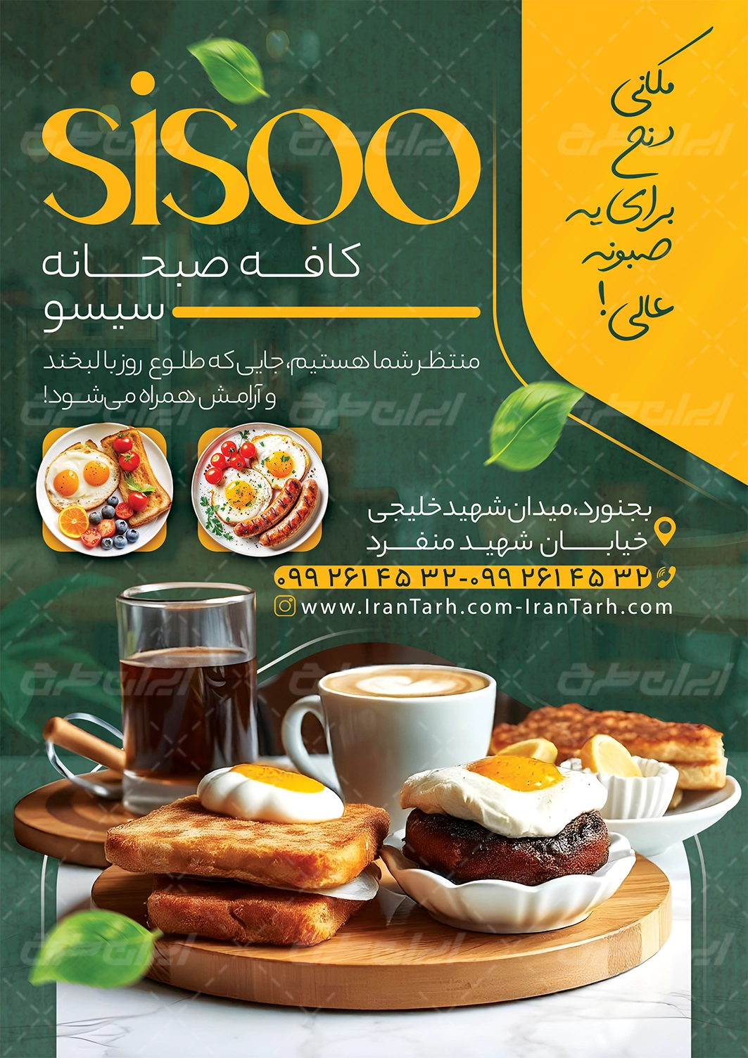 - طراحی شیک و کاربردی تراکت که مناسب شغل کافه صبحانه می باشد.