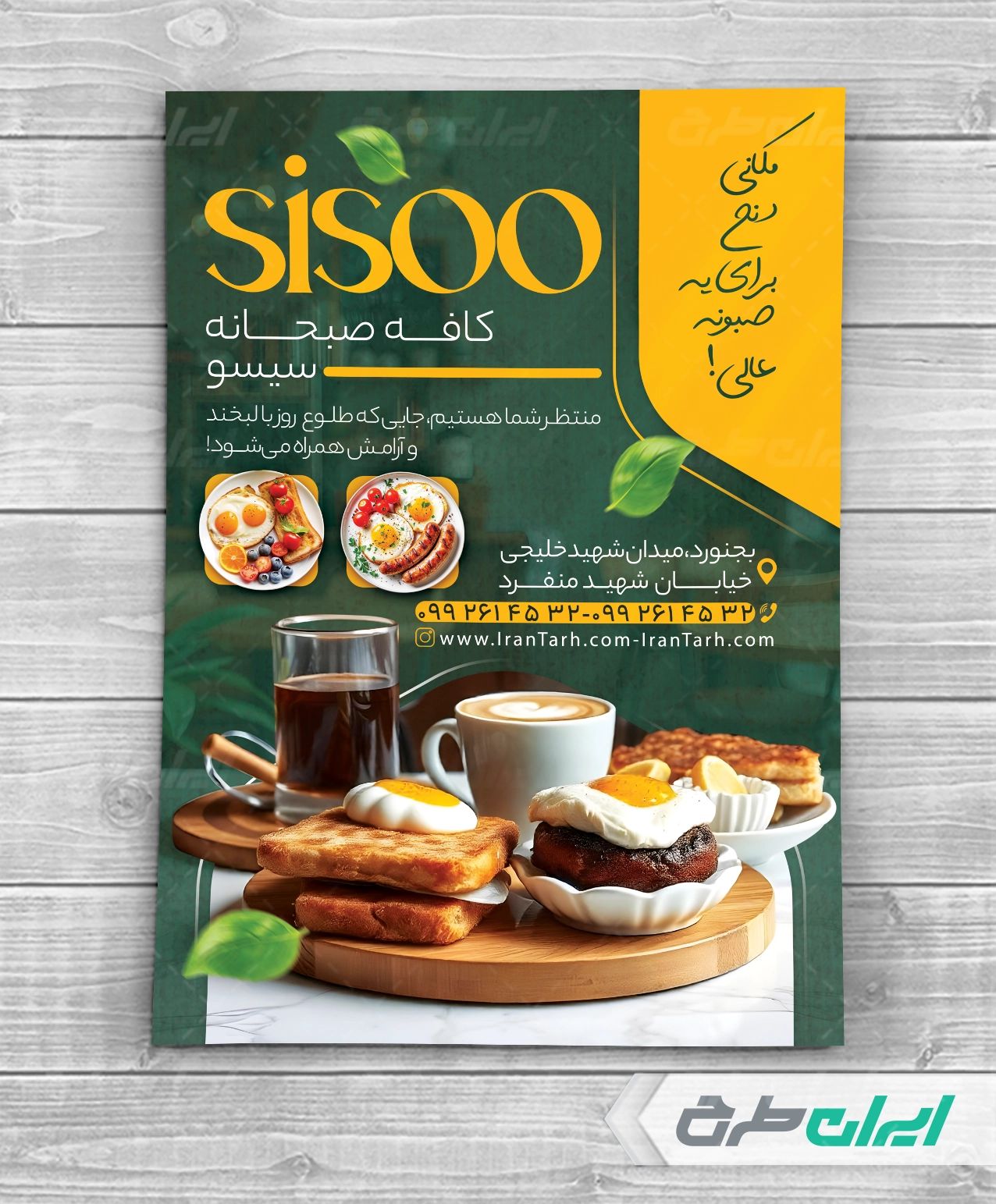 مشخصات فنی طرح تراکت لایه باز کافه صبحانه