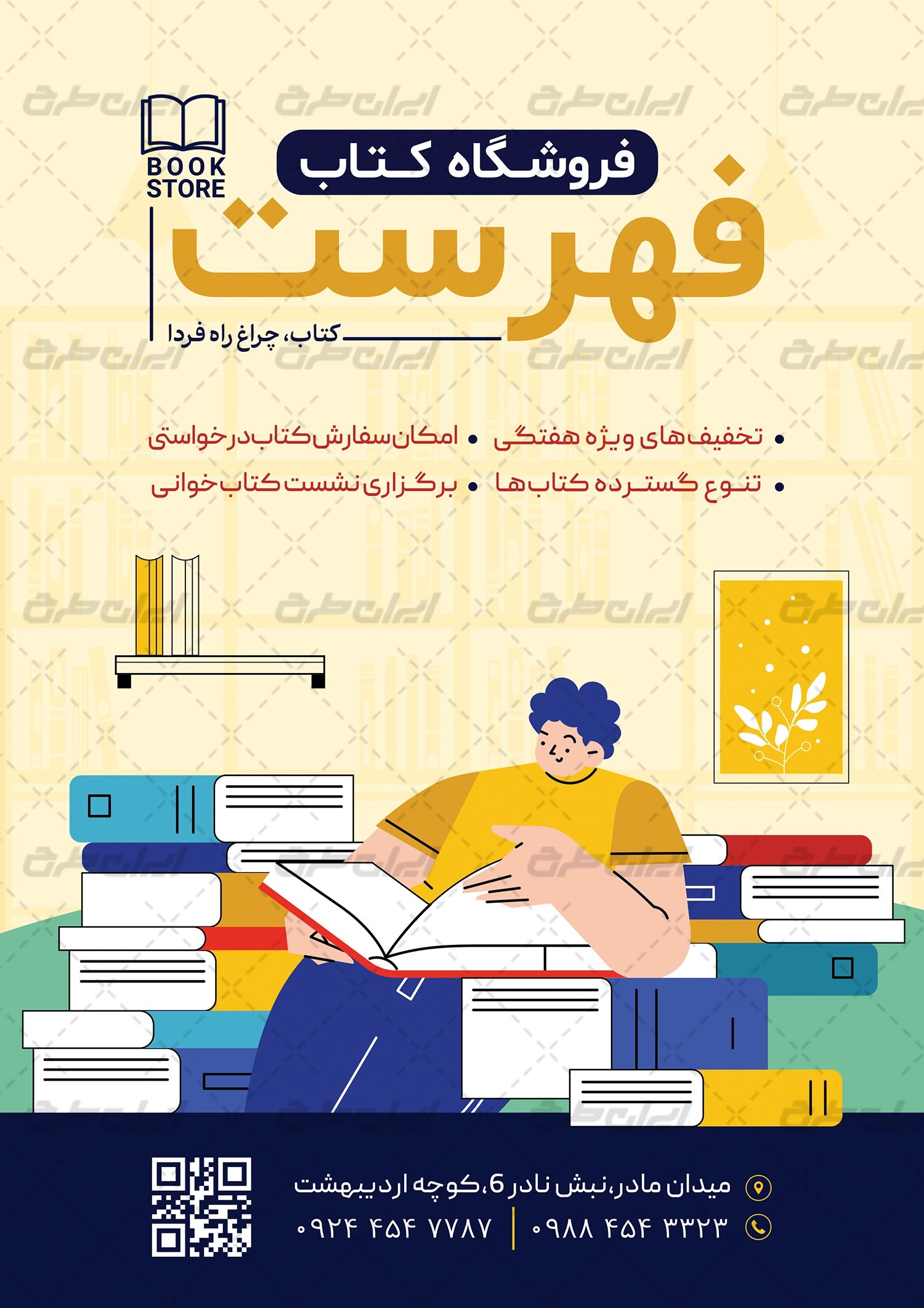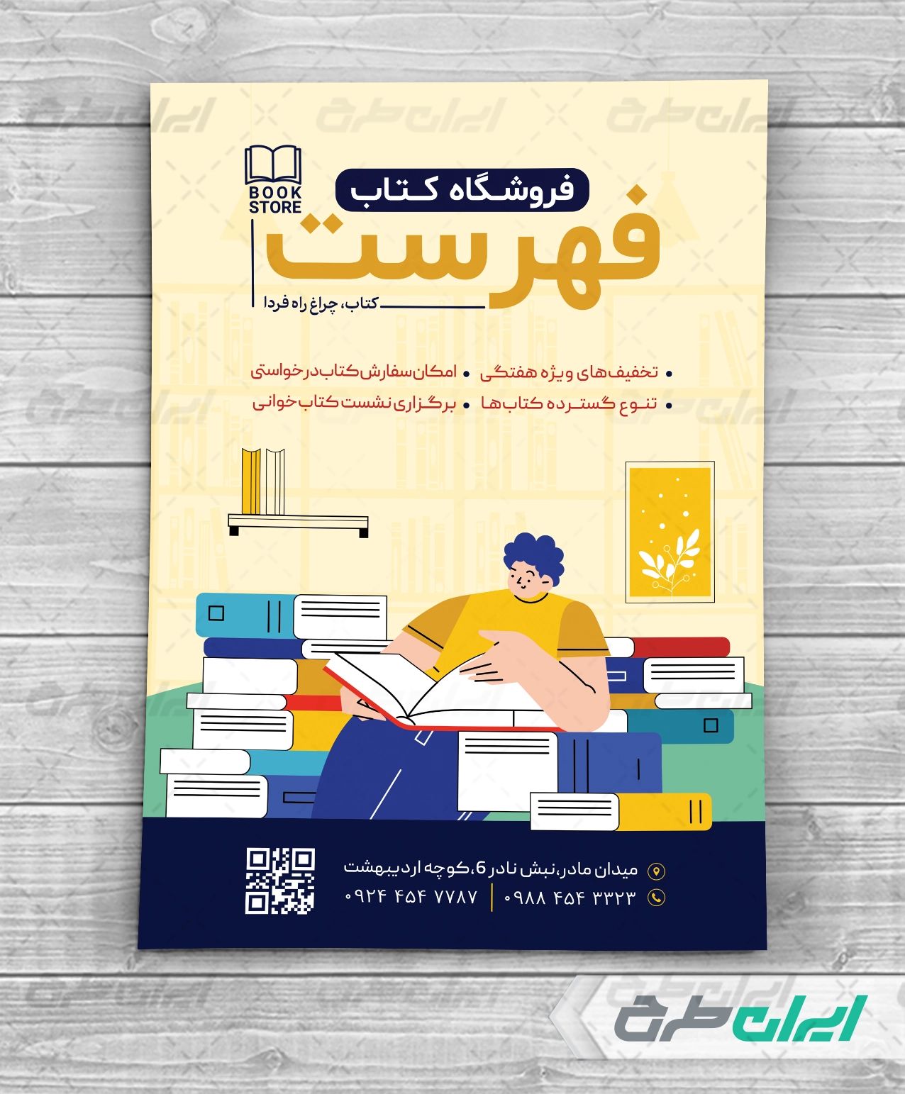 طرح تراکت لایه باز فروشگاه کتاب توسط تیم ایران طرح جهت تبلیغات و بازاریابی فروش کتاب و ترویج کتاب خوانی طراحی و در دسترس کاربران سایت قرار گرفته است.
