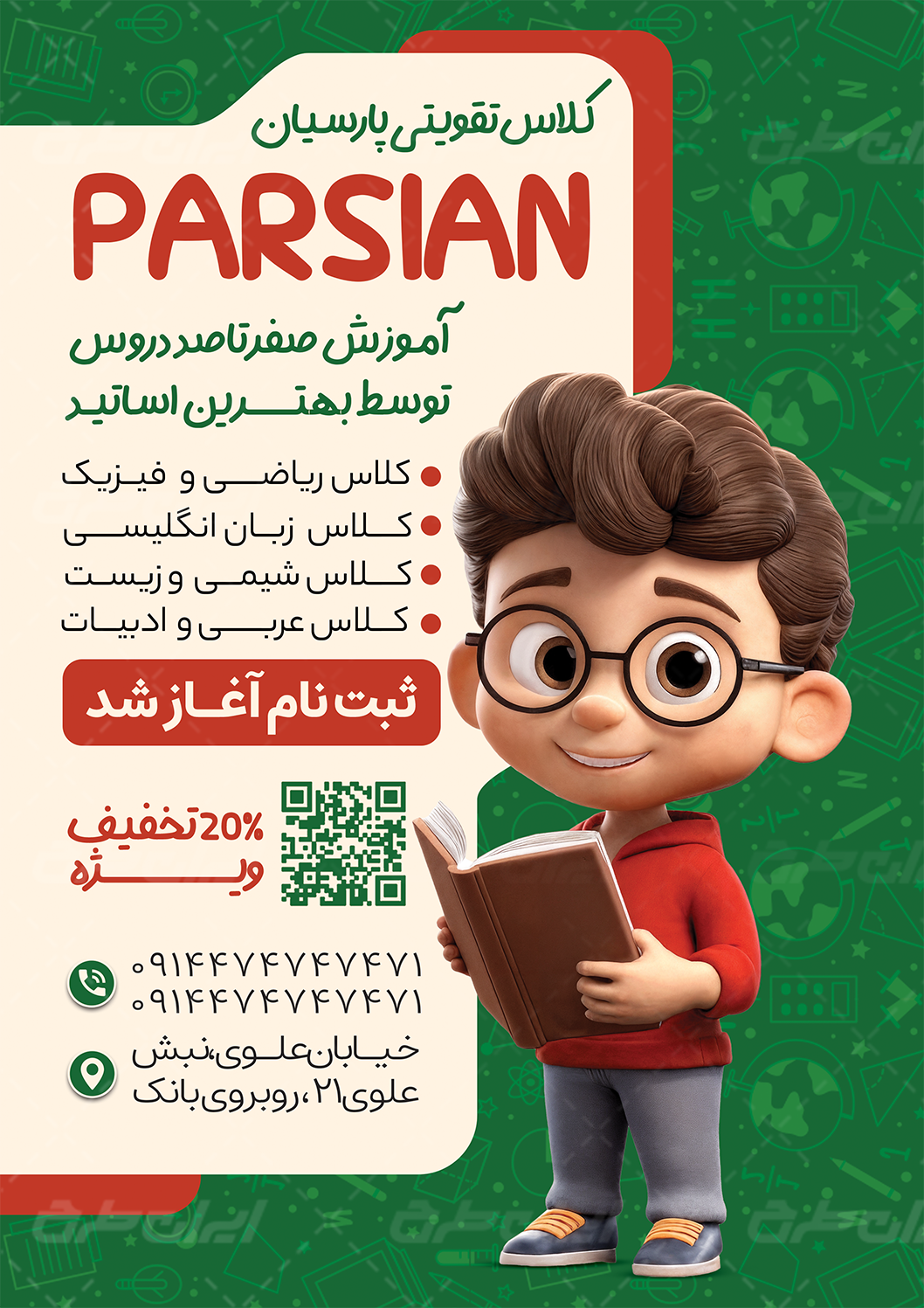 تراکت کلاس تقویتی با تصویر دانش اموز