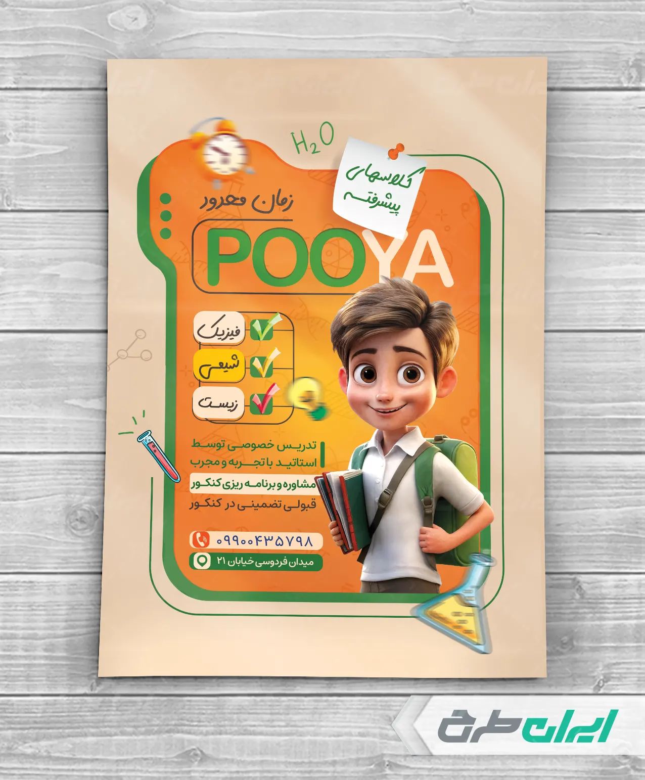 طرح تراکت آموزشگاه علمی و کلاس درسی، جهت تبلیغات این آموزشگاه ها توسط طراحان ایران طرح طراحی و در دسترس کاربران سایت قرار گرفته است.
