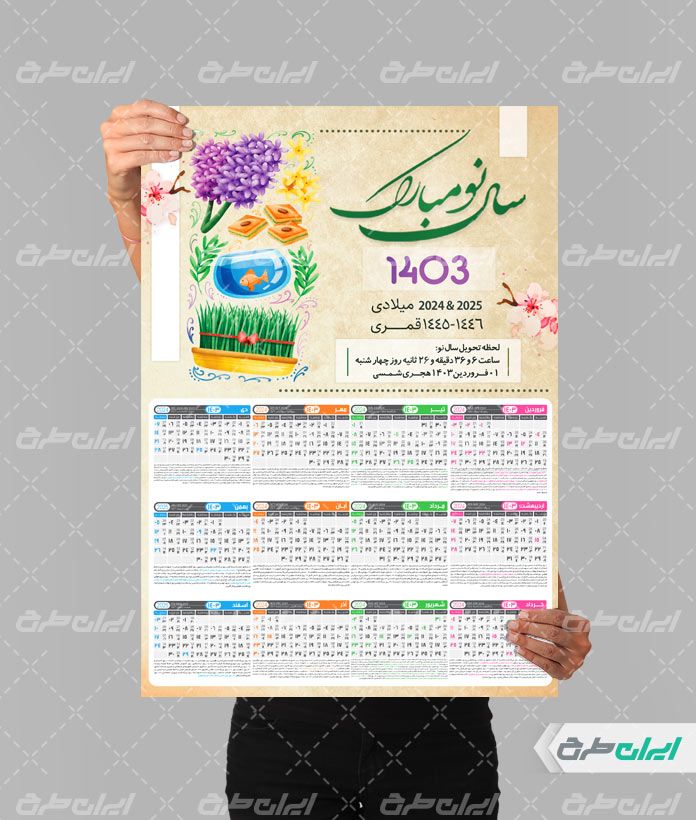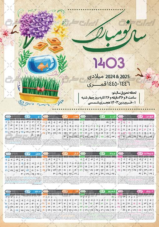 تقویم 1403، طرح تقویم 1403، تقویم دیواری 1403، تقویم تبریک نوروز، طرح تقویم تبریک نوروز 1403، تقویم تبریک نوروز 1403، جدول ماه و ایام هفته، لیست مناسبت های ملی و جهانی ، لیبل ، شیپ های کاربردی