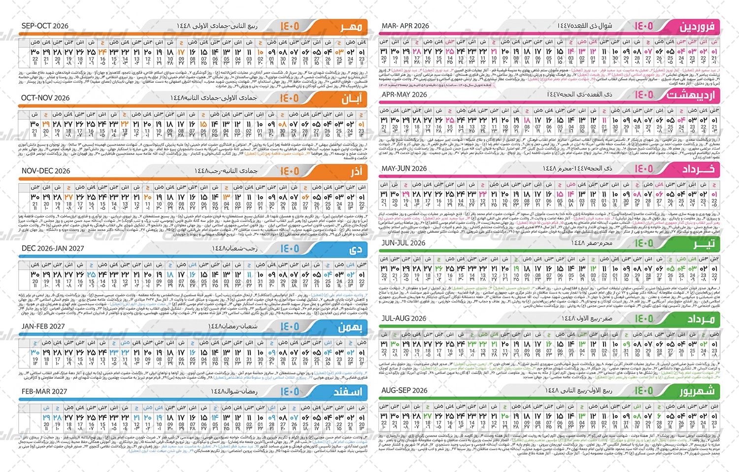 - همنشینی مناسب رنگ های بکار رفته و طرح تقویم