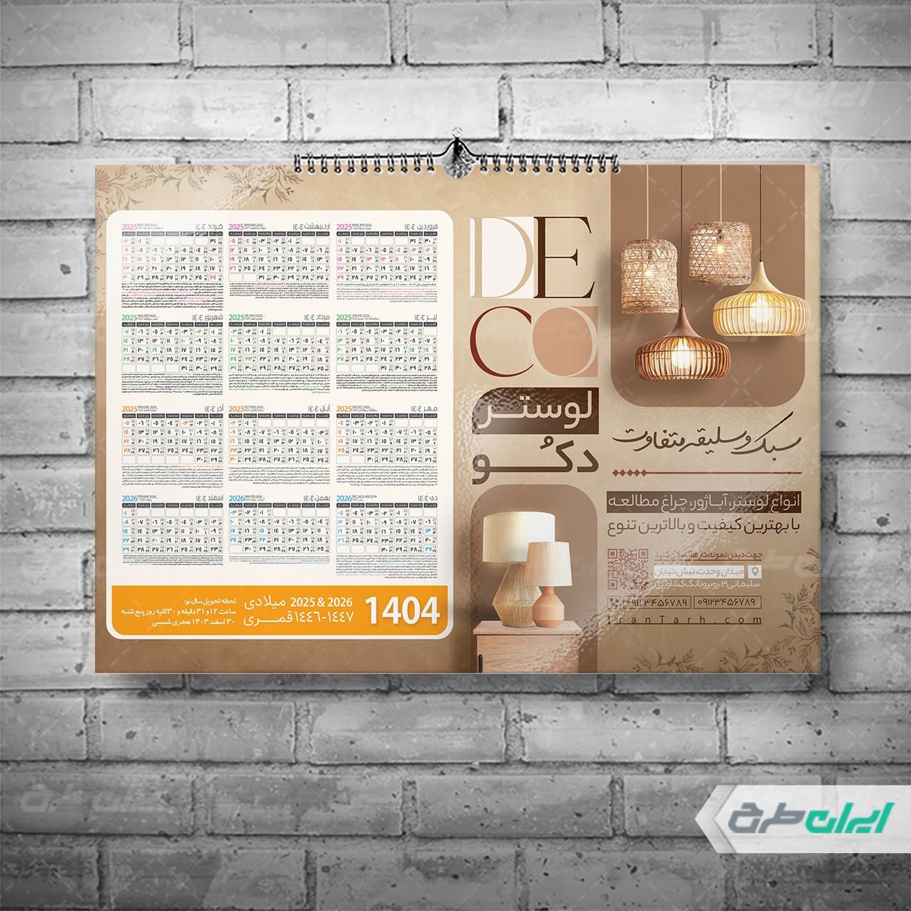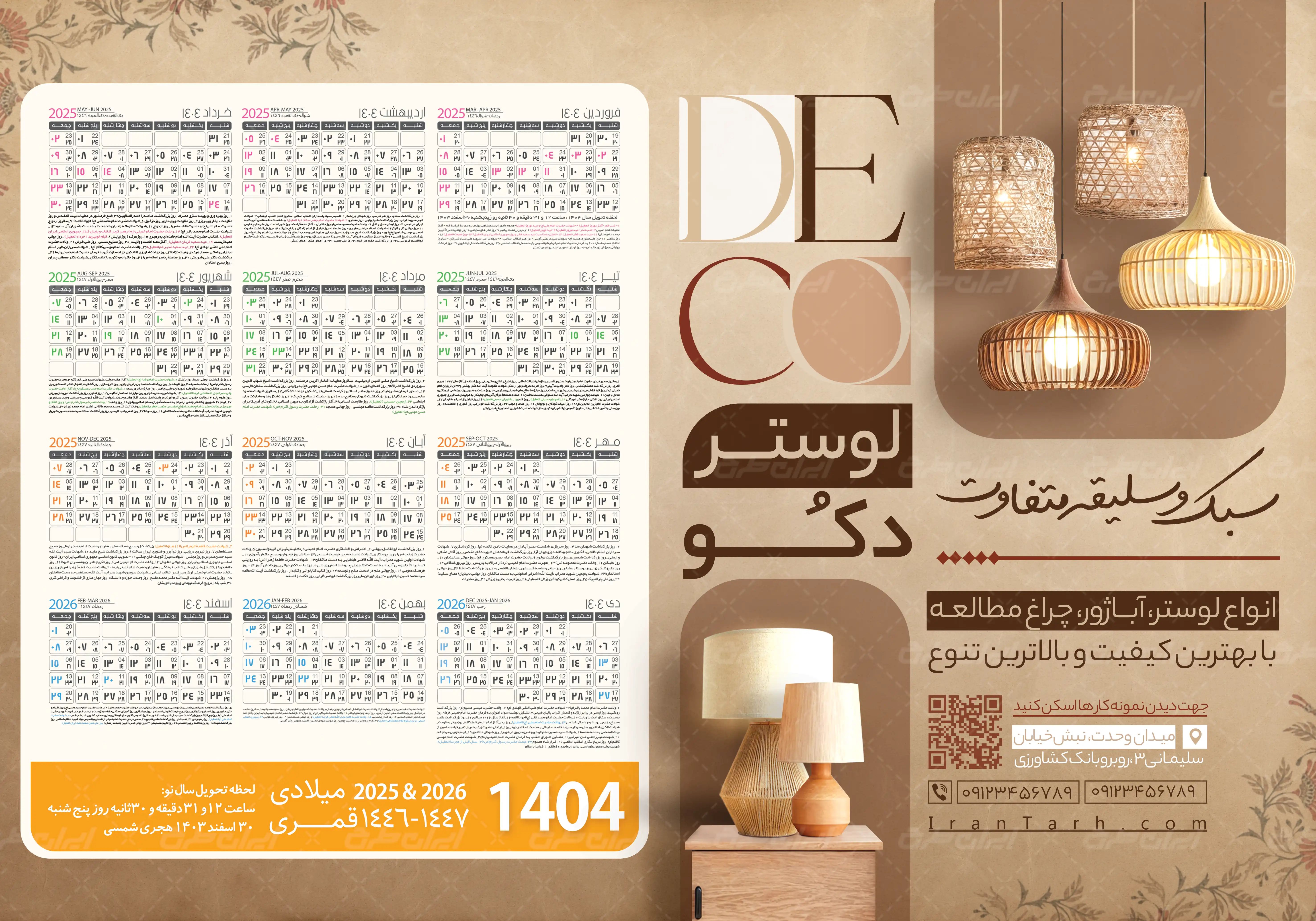 - طراحی شیک و کاربردی تقویم فروشگاه لوستر 1404