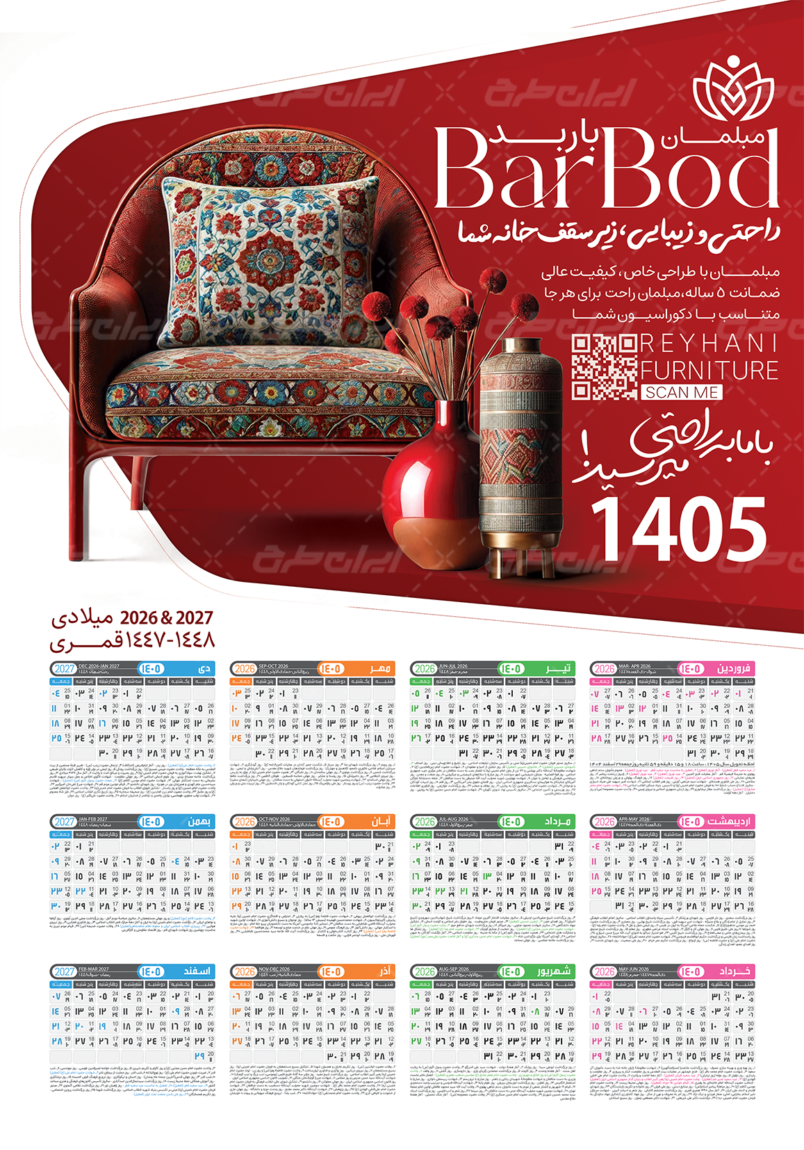- استفاده مناسب از عکس باکیفیت مبل که مناسب طرح تقویم 1405 می باشد.
