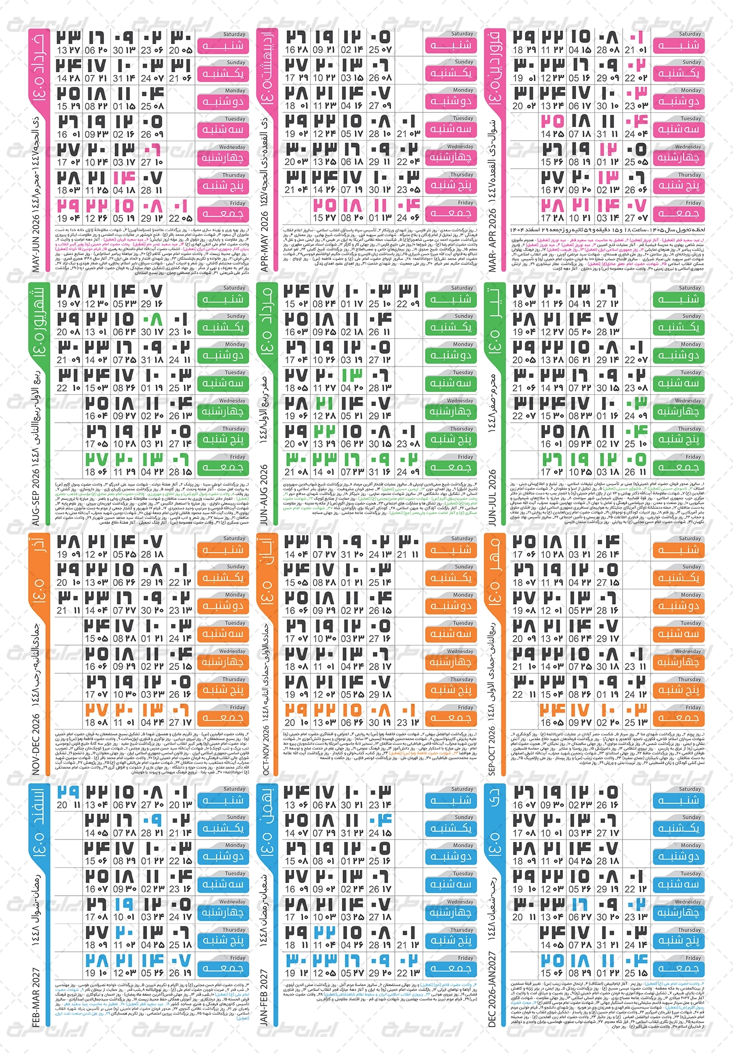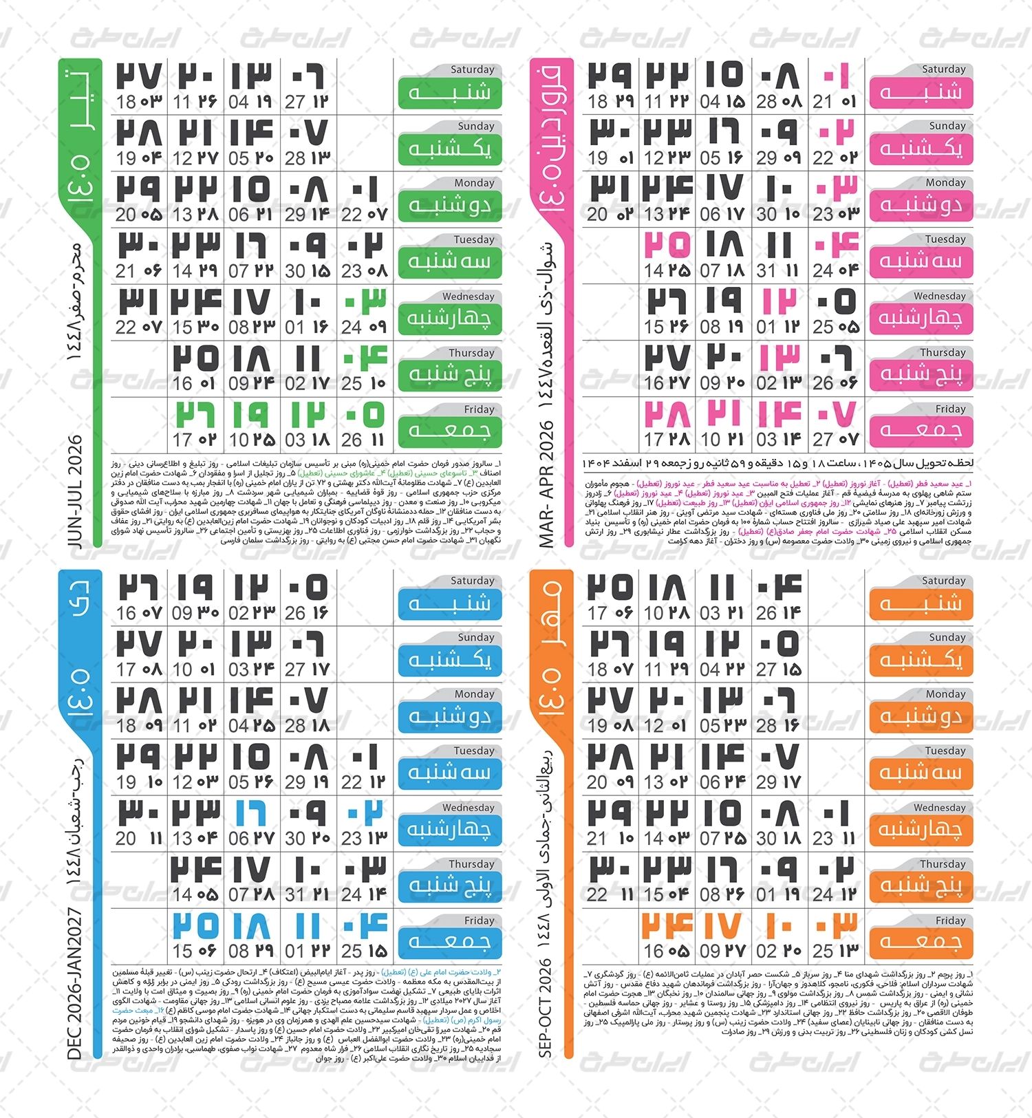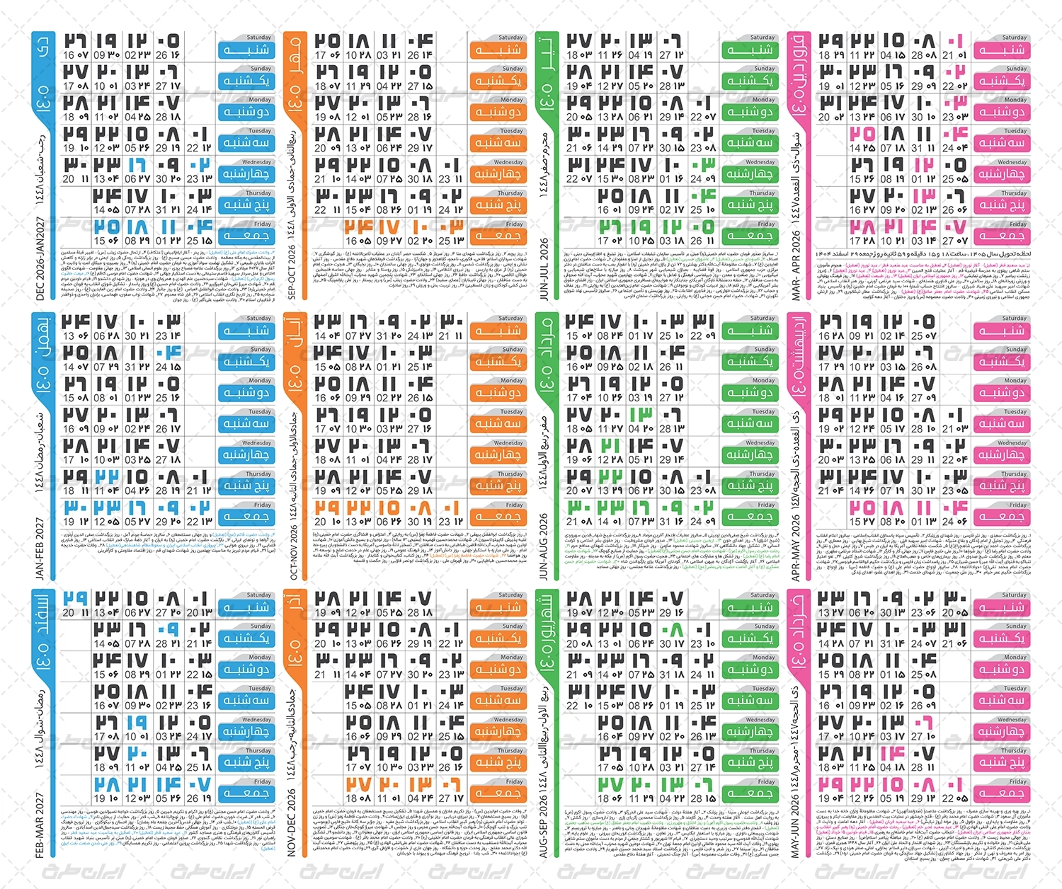 - همنشینی مناسب رنگ های بکار رفته و طرح تقویم
