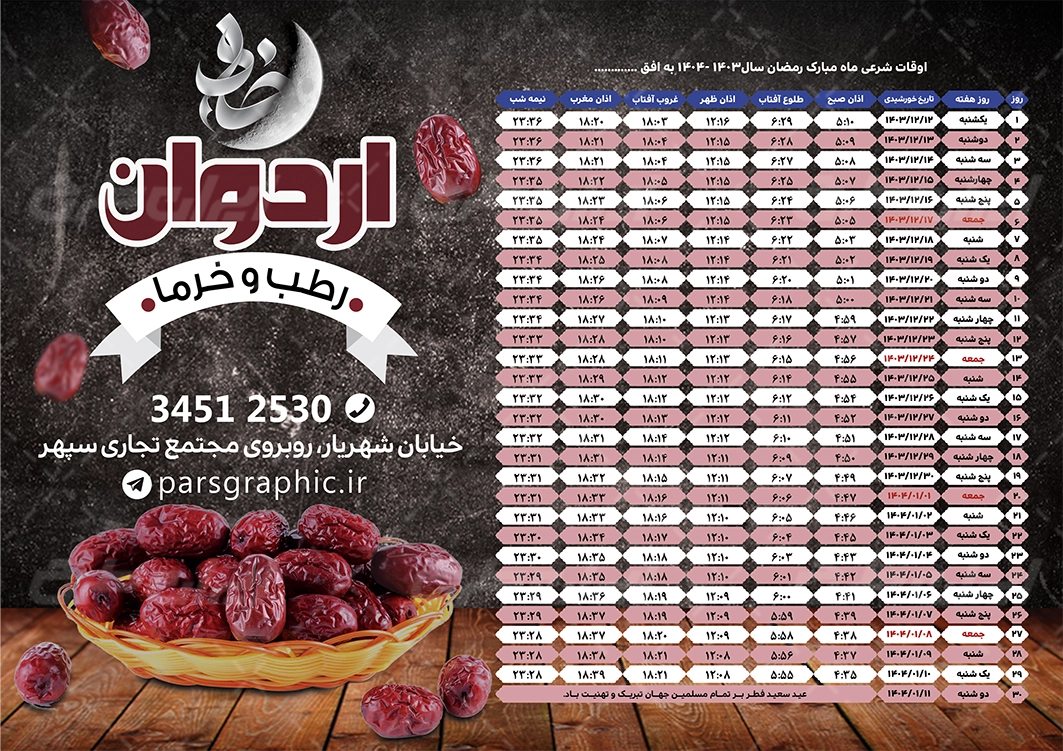 جدول اوقات شرعی رمضان خرما و رطب