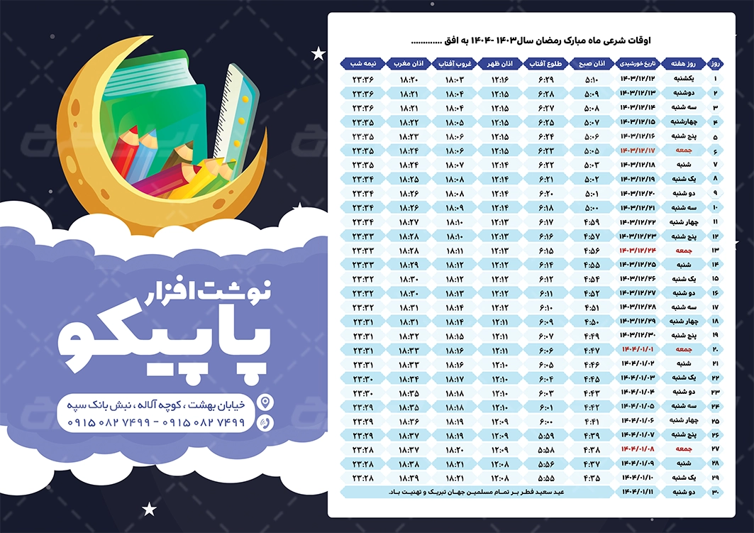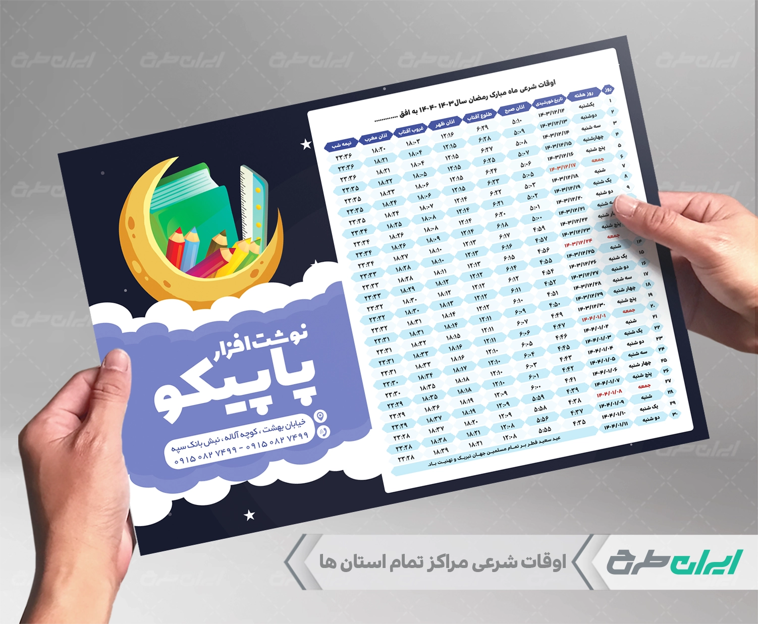 طرح اوقات شرعی ماه رمضان ، توسط تیم حرفه ای پارس گرافیک جهت استفاده کاربران سایت طراحی و به صورت لایه باز در دسترس کاربران قرار گرفته است.