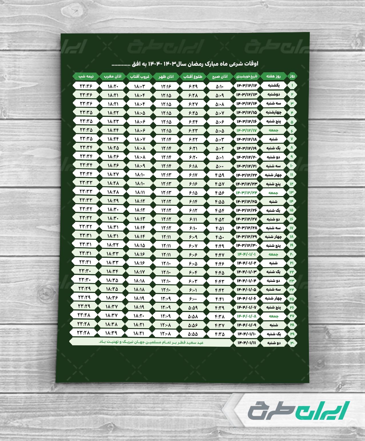 مشخصات فنی طرح اوقات شرعی ماه رمضان 1403