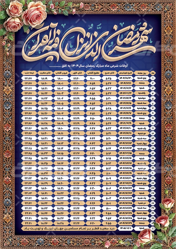 طرح اوقات شرعی رمضان 1404 , ماه رمضان , اوقات شرعی ماه رمضان , اوقات شرعی ماه رمضان 1404 , اوقات شرعی رمضان 1404 , جشن رمضان , طرح لایه باز اوقات شرعی , ماه مبارک رمضان , دانلود طرح لایه باز اوقات شرعی , اوقات شرعی لایه باز , 1404 , طرح اوقات شرعی 1404 , جدول اوقات شرعی , اوقات شرعی , اوقات شرعی ماه رمضان 1404 , اوقات شرعی رمضان 1404 ,
