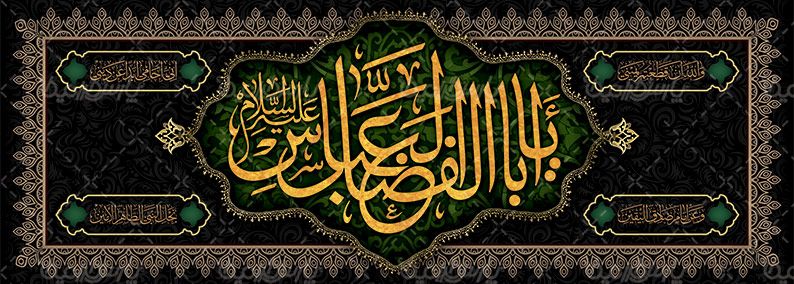 بنر لایه باز ایام محرم، بنر محرم، طرح بنر محرم، تایپوگرافی یا ابوالفضل العباس، کادر مذهبی، کادر تذهیب، حاشیه مذهبی، نقوش مذهبی