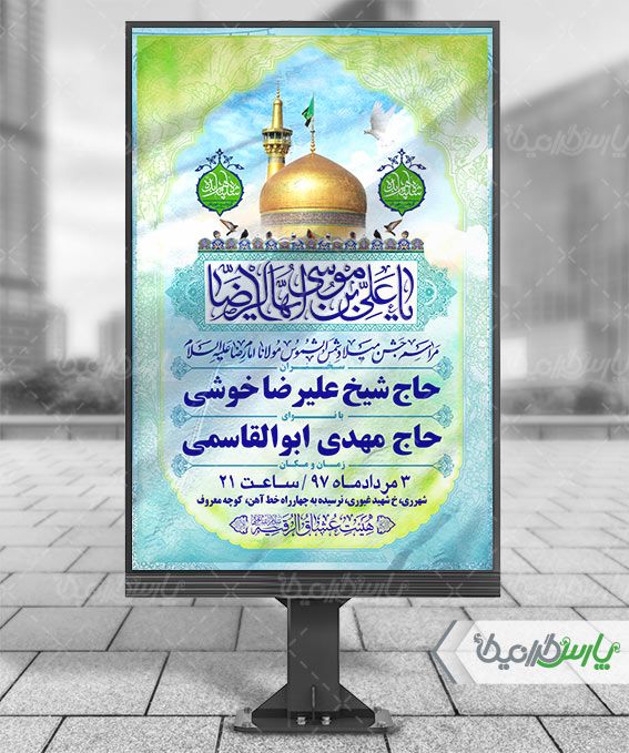 طرح پوستر جشن میلاد امام رضا در نرم افزار فتوشاپ قابل اجرا و ویرایش میباشد.