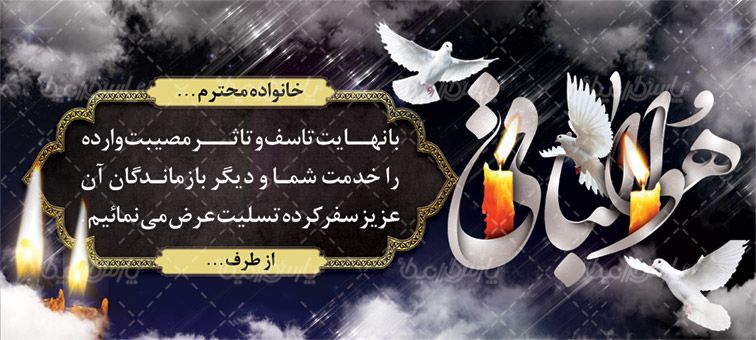 متن بنر تسلیت , طرح بنر تسلیت , ترحیم , کبوتر , شمع , کادر تذهیب , بنر تسلیت , متن تسلیت , طرح بنر تسلیت , متن ترحیم , بنر ترحیم , متن بنر ترحیم , تسلیت , تایپوگرافی هوالباقی , طرح بنر ترحیم , ابر ,