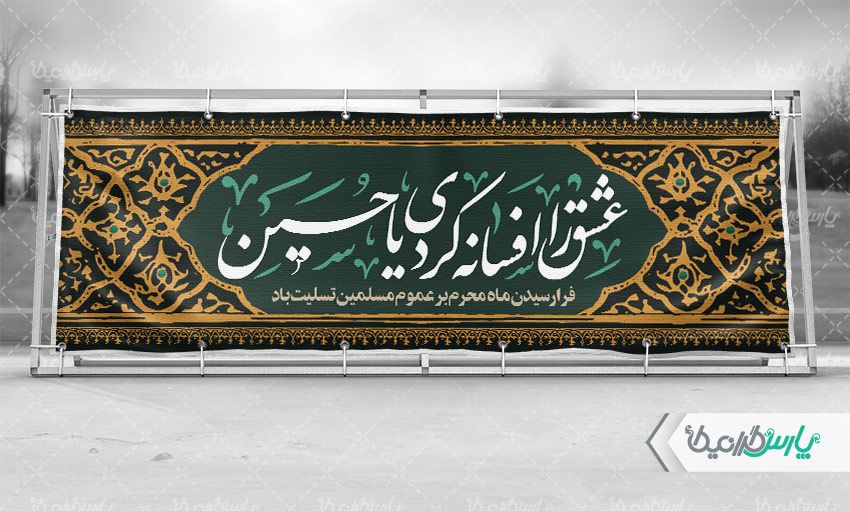 - طراحی بنر با استفاده از متن عشق را افسانه کردی یا حسین