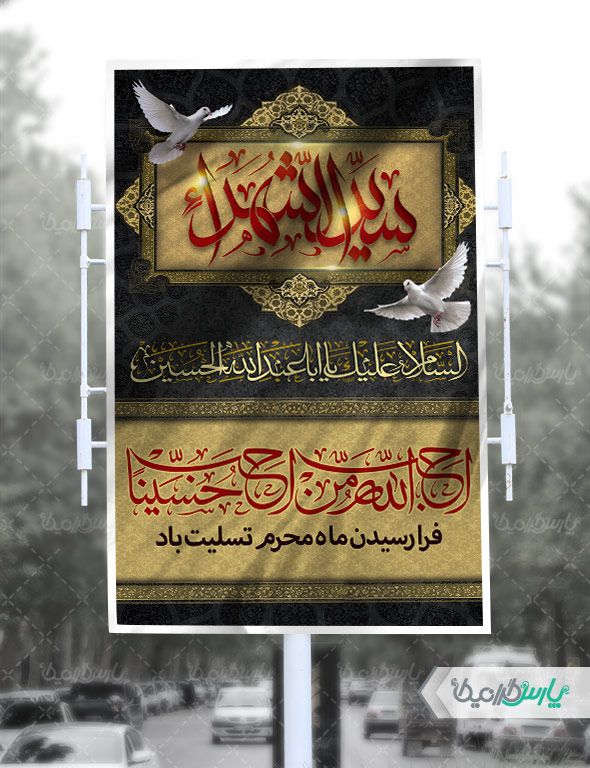 - استفاده از جلوه نور، کبوتر و متن تسلیت ایام محرم در بنر