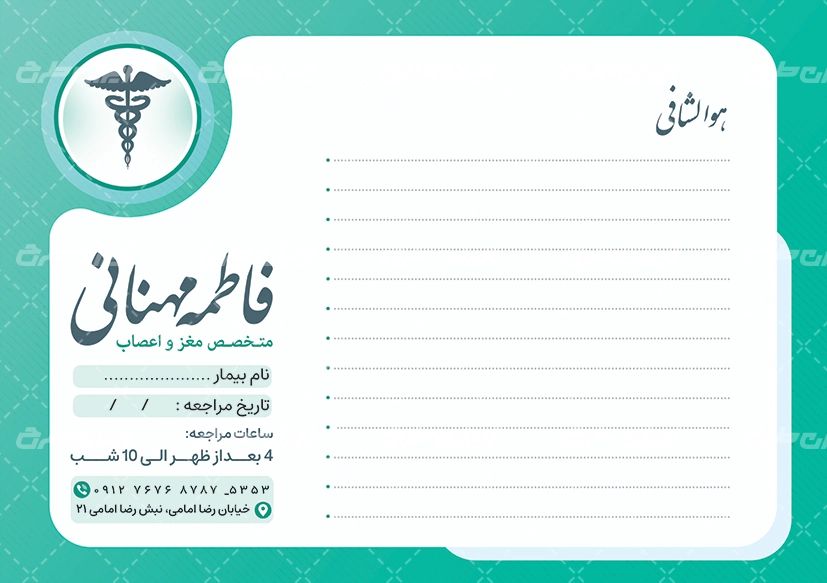 طرح لایه باز سرنسخه پزشک یکی از ابزارهای طراحی حرفهای است که برای استفاده در مطبها، کلینیکها و بیمارستانها طراحی میشود. سرنسخه پزشک بهعنوان یک سند رسمی برای نوشتن نسخهها، تجویز داروها و توضیحات پزشکی برای بیماران استفاده میشود و باید دارای طراحی مشخص و استاندارد باشد تا علاوه بر جذابیت بصری، بهطور حرفهای و مطابق با هویت پزشک یا کلینیک به نظر برسد. این طرحها معمولاً شامل نام و عنوان پزشک، تخصص، آدرس، شماره تماس، لوگو و سایر اطلاعات ضروری است که نیاز به بهروزرسانی و شخصیسازی به راحتی از طریق نرمافزارهای گرافیکی امکانپذیر است.