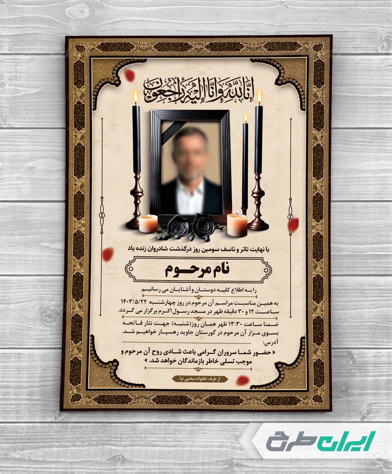 ایران طرح نمونه هایی از طرح اعلامیه ترحیم را جهت استفاده کاربران طراحی کرده است.