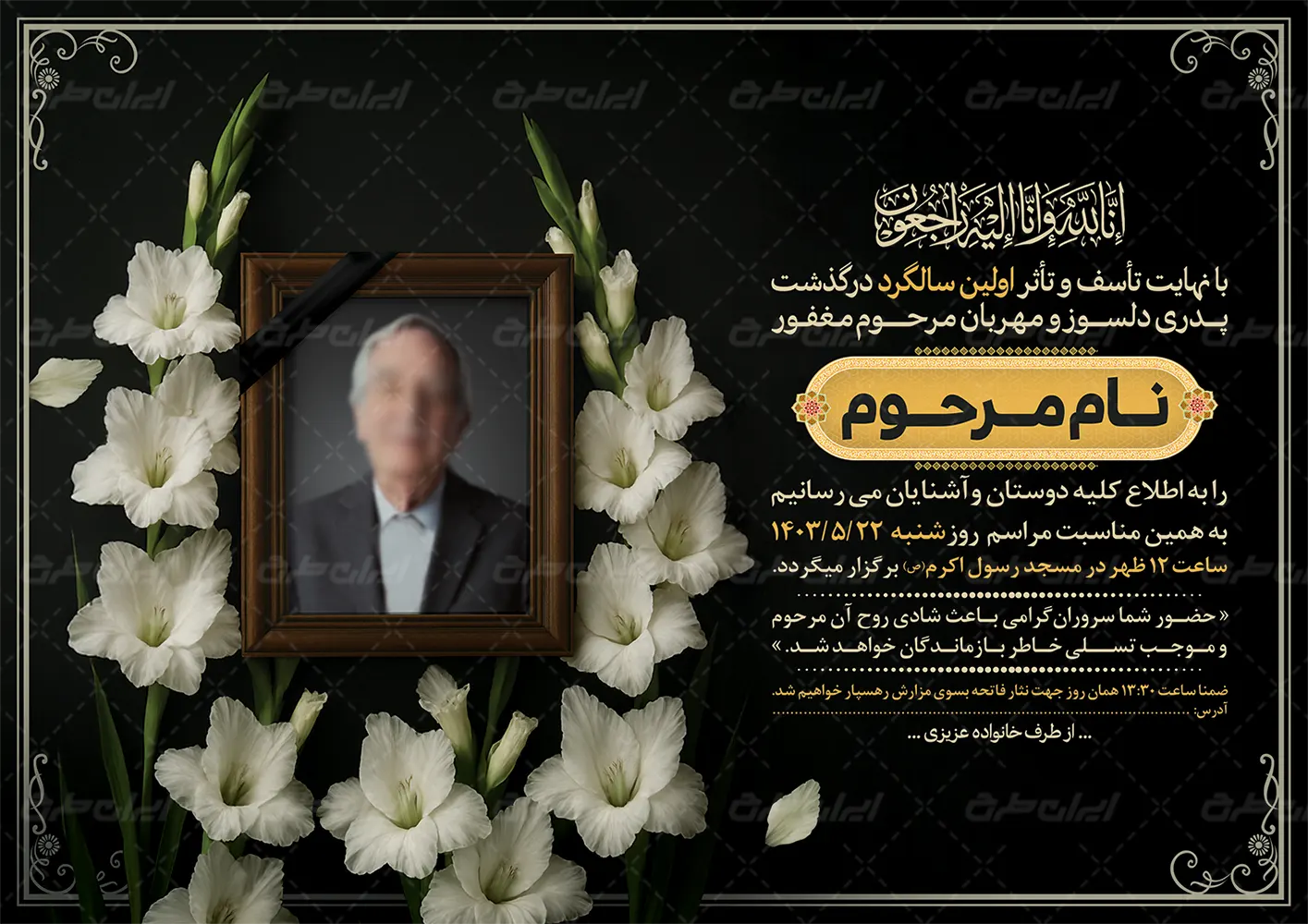 ایران طرح نمونه هایی از طرح اعلامیه ترحیم را جهت استفاده کاربران طراحی کرده است.