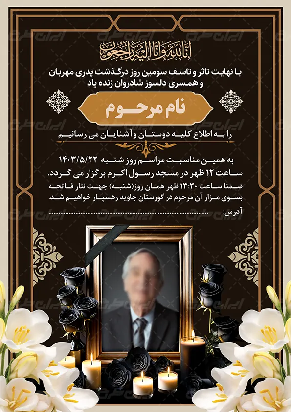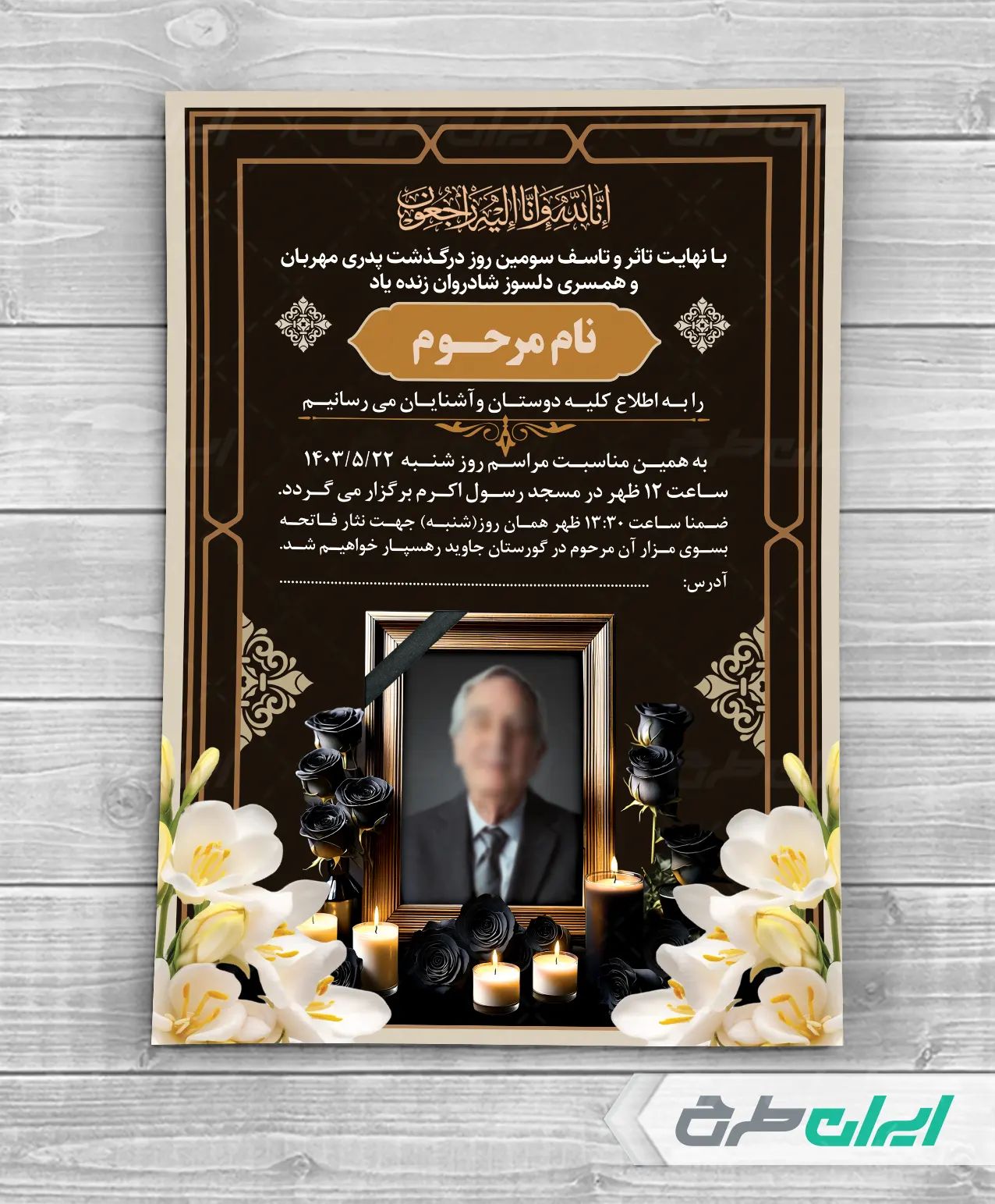 ایران طرح نمونه هایی از طرح اعلامیه ترحیم را جهت استفاده کاربران طراحی کرده است.