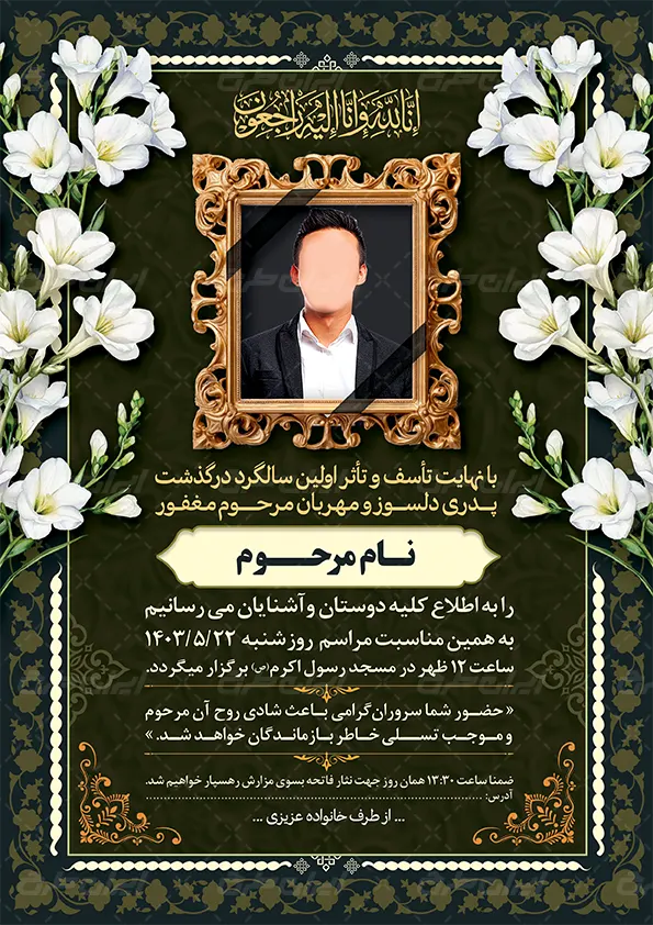 - طراحی اعلامیه ترحیم با استفاده از المنت های مذهبی